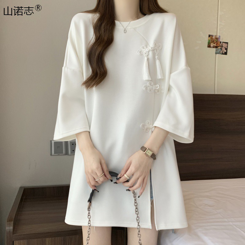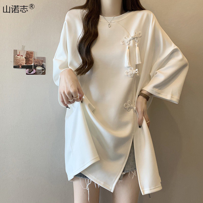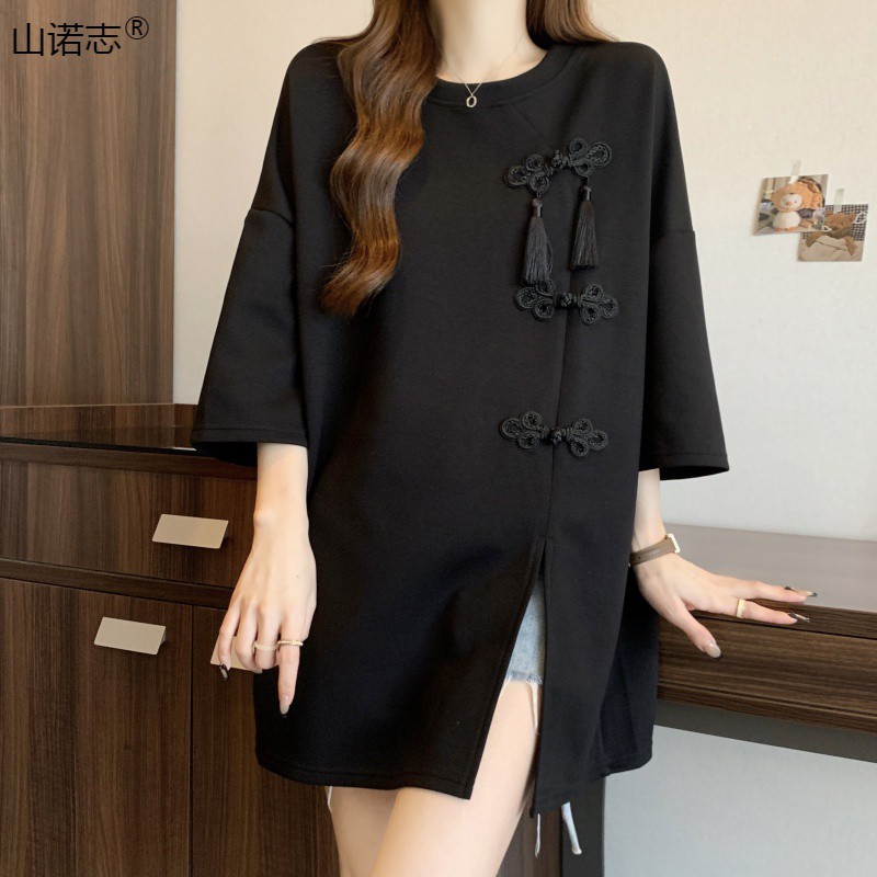| nameOriginal | New Chinese Style National Style Mid-length Top Women's Summer European Goods Heavy Industry Sweatshirt Mid-length Dress Disappearing Short-sleeved T-shirt Hair |