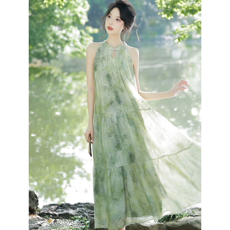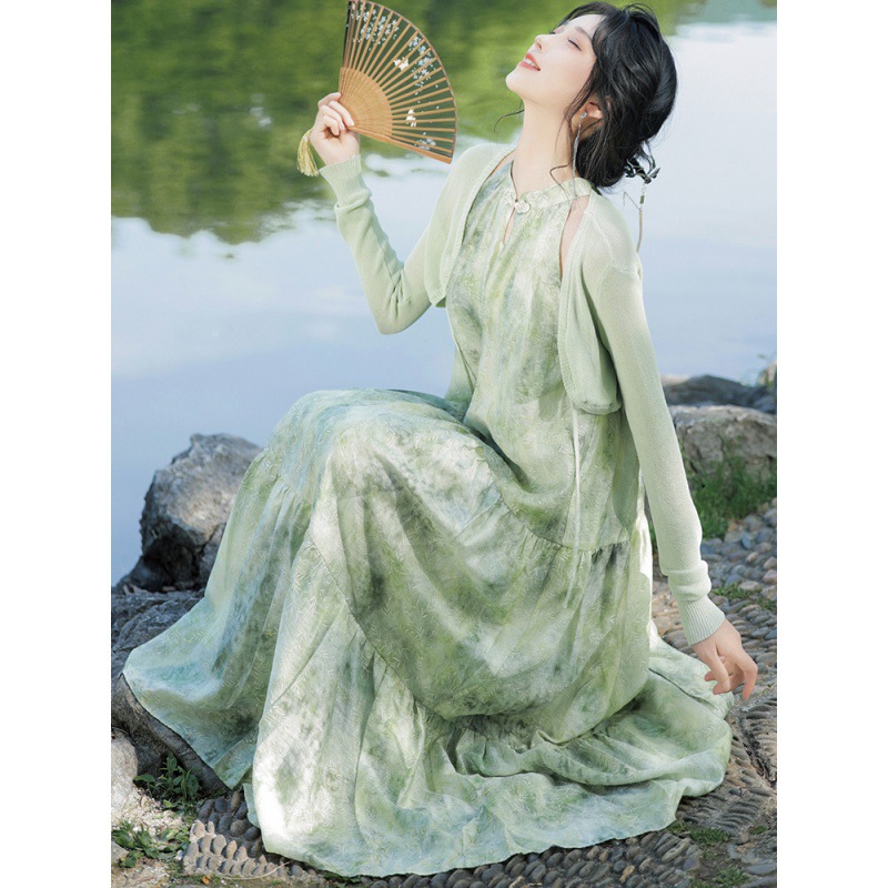 | nameOriginal | New Chinese Style National Style Neck dress Women's Mint Mambo Style Floral Dress Green suit |