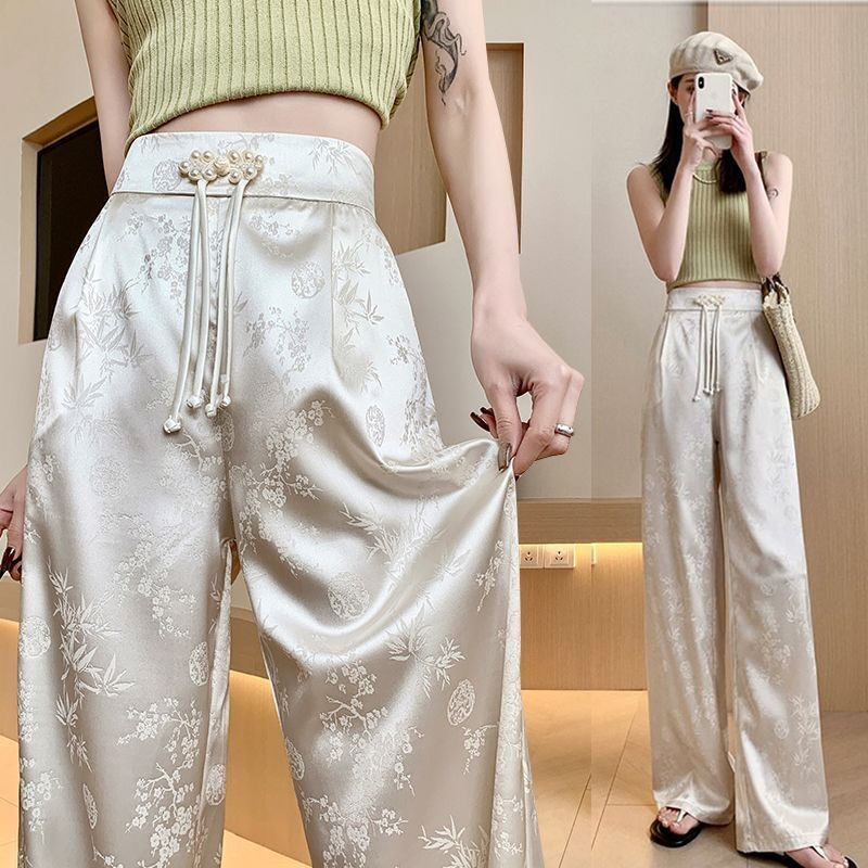 | nameOriginal | New Chinese Style National Style Satin Jacquard Buckle Wide Leg Pants Women's Spring and Summer New High Waist Slimming Pants |