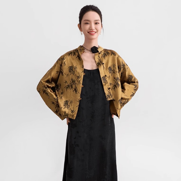 | nameOriginal | New Chinese Style National Style Series Acetic Acid Bamboo Leaf Print Small Collar Short High-grade Golden Jacket |