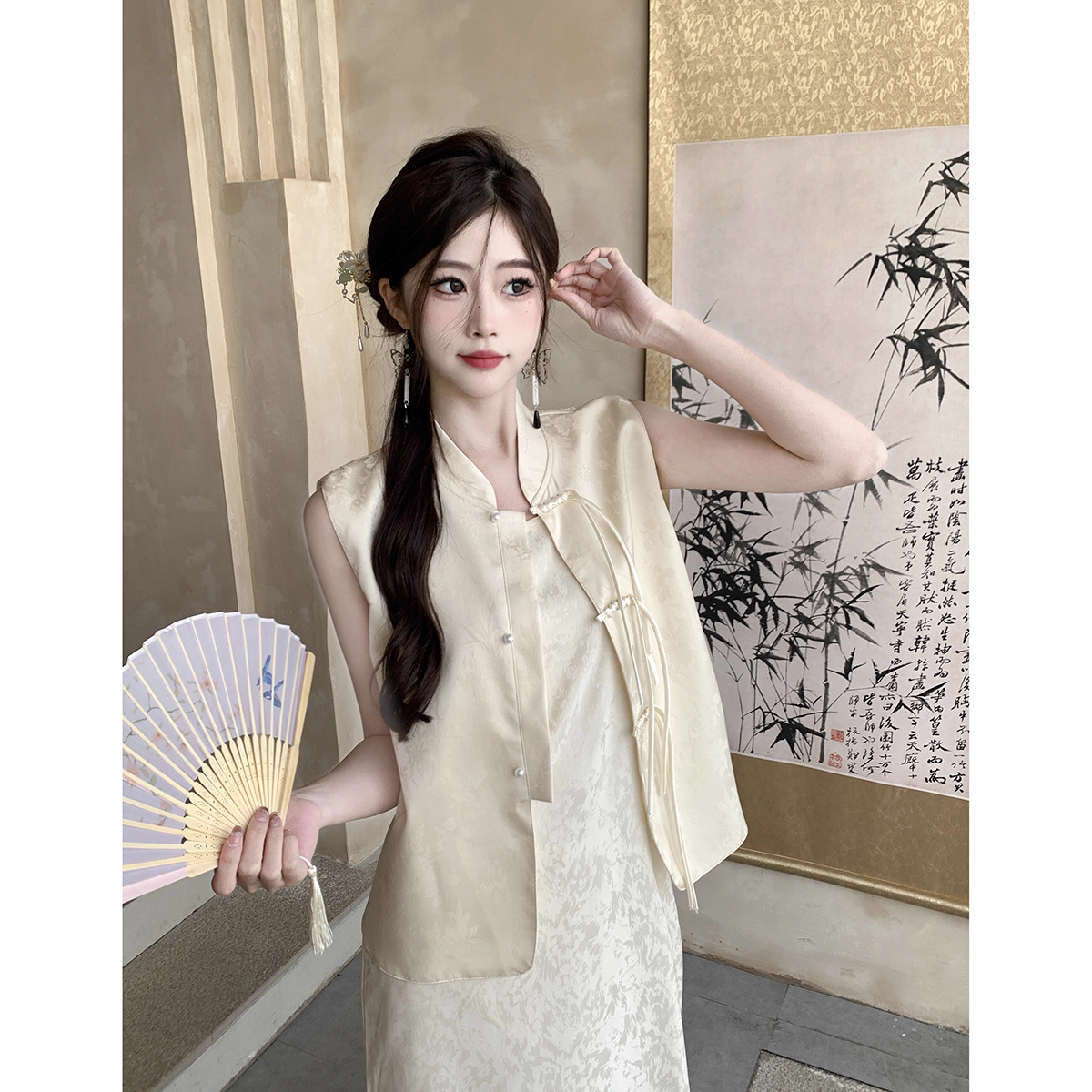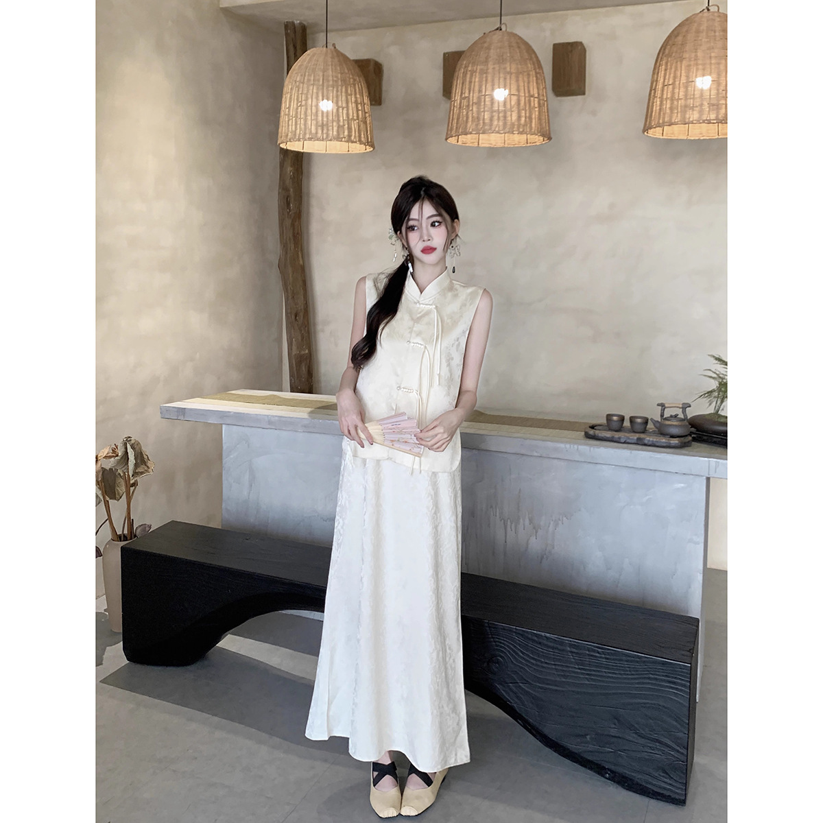 | nameOriginal | New Chinese Style National Style Set Women's Buckle Stand Collar Jacquard Vest Vest Elegant Sling Dress Fashion Two-piece Set |