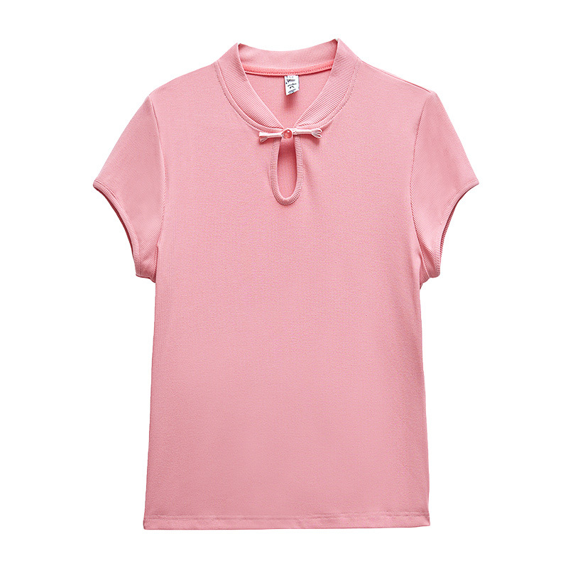 New Chinese Style National Style Shoulder Short-sleeved T-shirt Women’s Summer Design Sense Niche Slim-fit Vertical Collar Buckle Knit Top