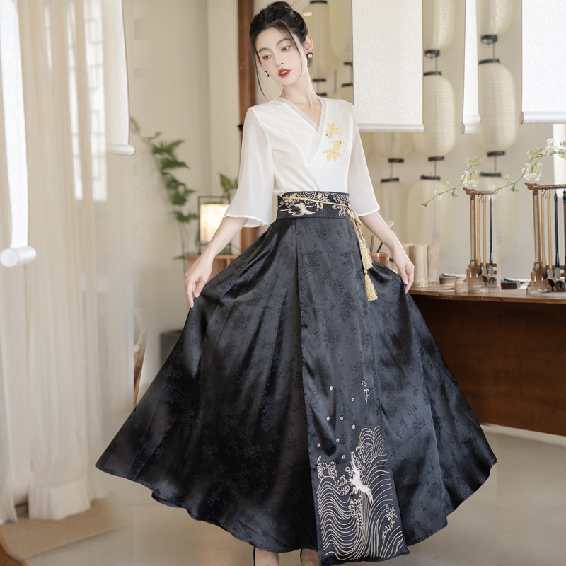 | nameOriginal | New Chinese Style National Style Simple Embroidered Top Modified Loof Waist High-end Ladies and Ladies Horse Face Dress with Waist Cover |