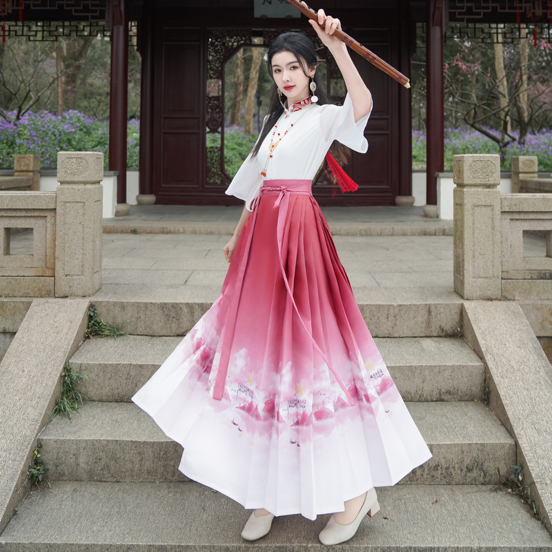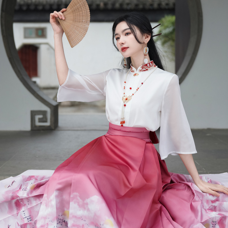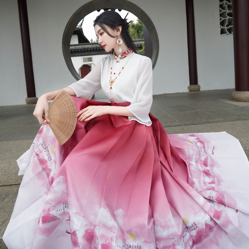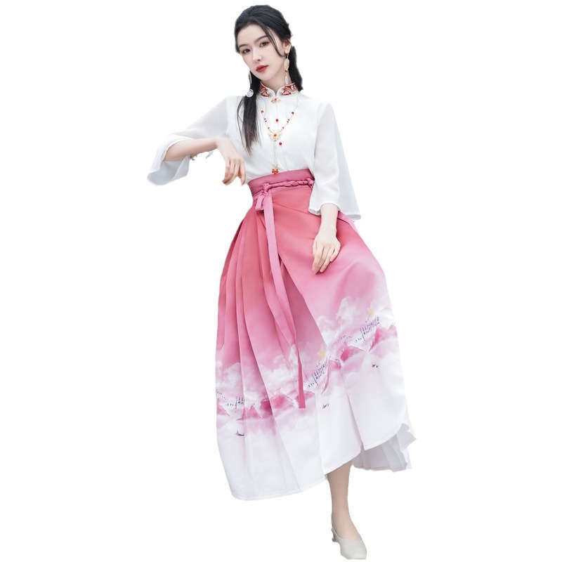 | nameOriginal | New Chinese Style National Style Slant Placket Embroidered Aircraft Sleeve Long Sleeve Shirt One-piece High-definition Printed High-end Horse-faced Skirt |