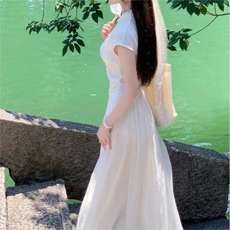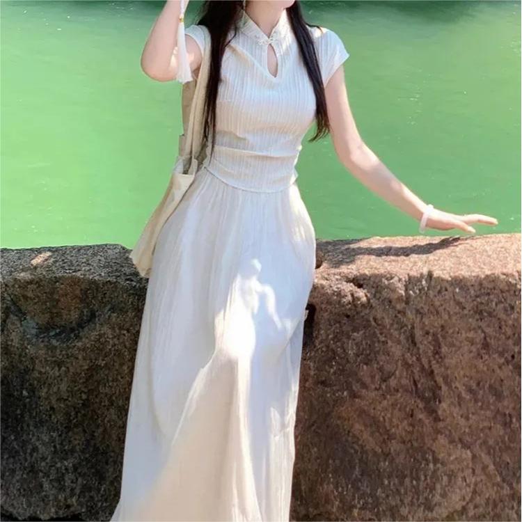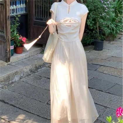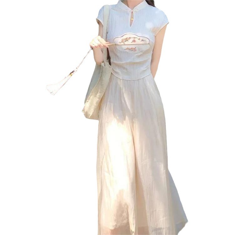 | nameOriginal | New Chinese Style National Style suit 2024 Summer Retro Artistic Button Short-sleeved Slim-fit Holiday Half-length Dress Two-piece Set |