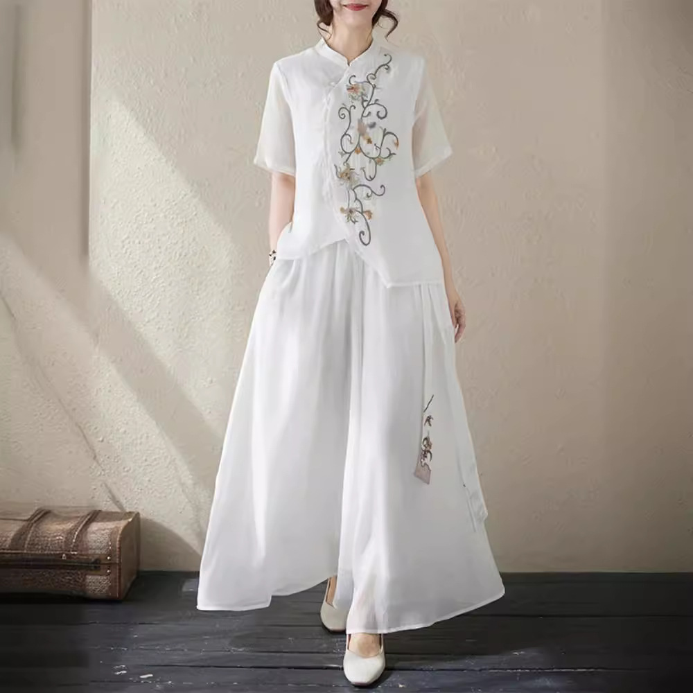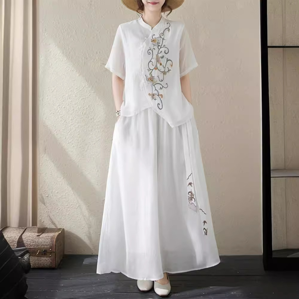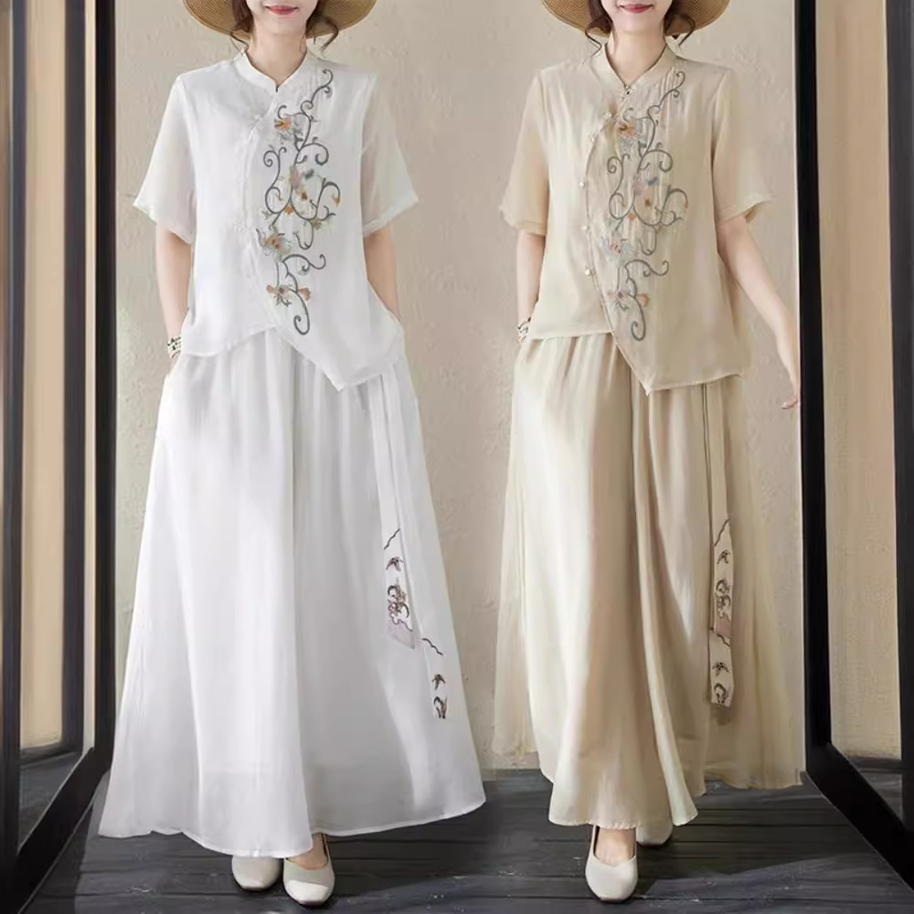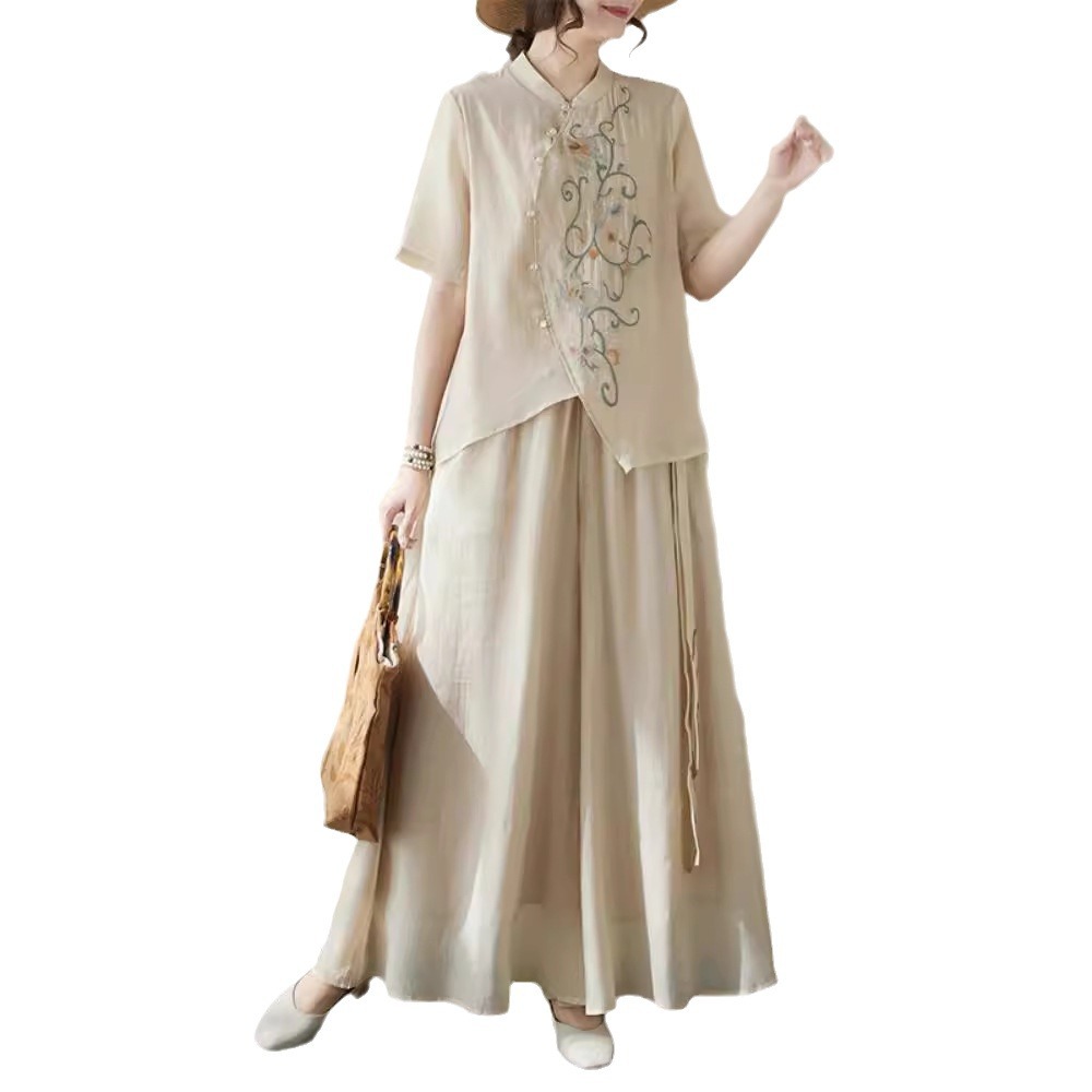 | nameOriginal | New Chinese Style National Style suit Women's 2024 Summer New Mother Western Style Fashion Casual Cotton Linen Top Two-piece Set |