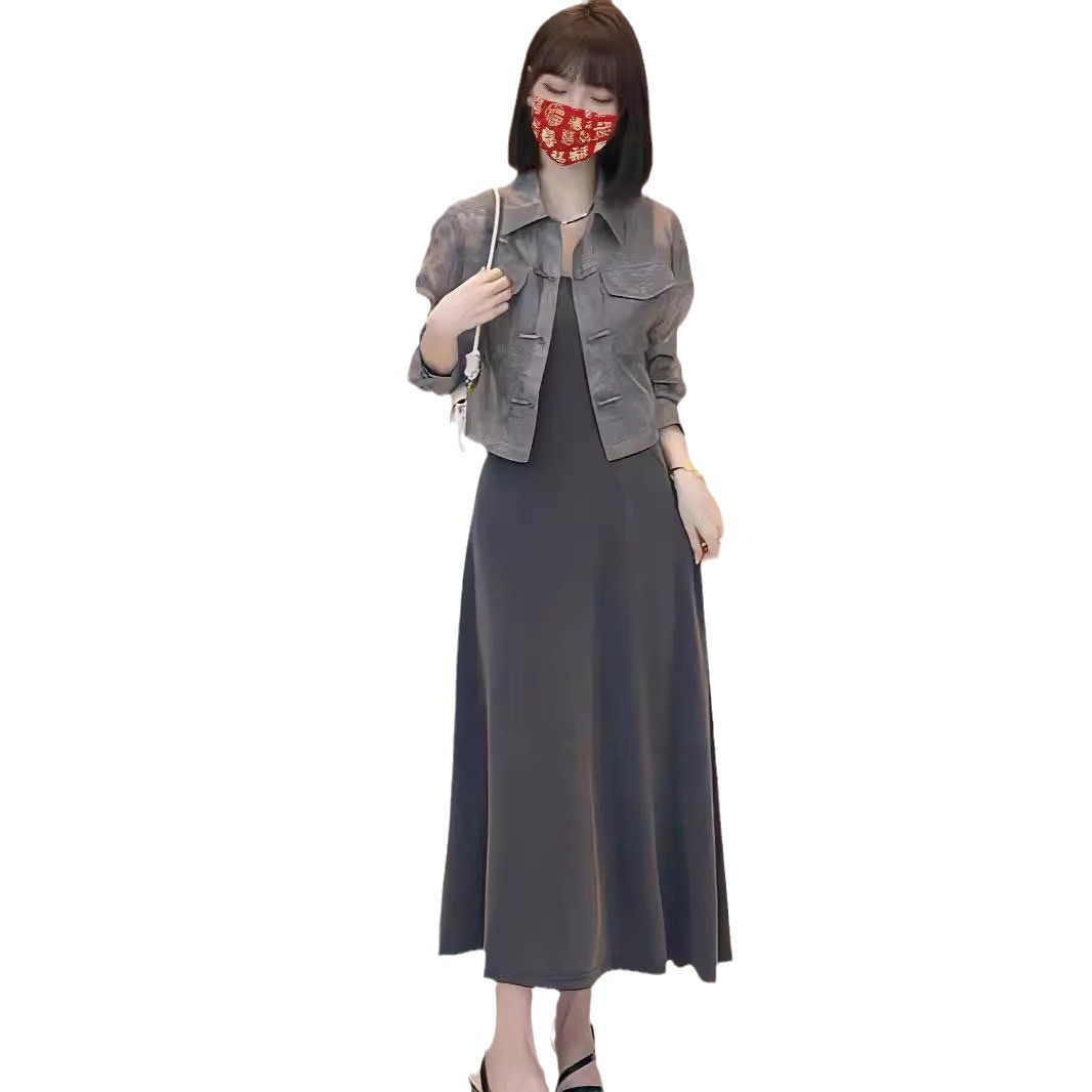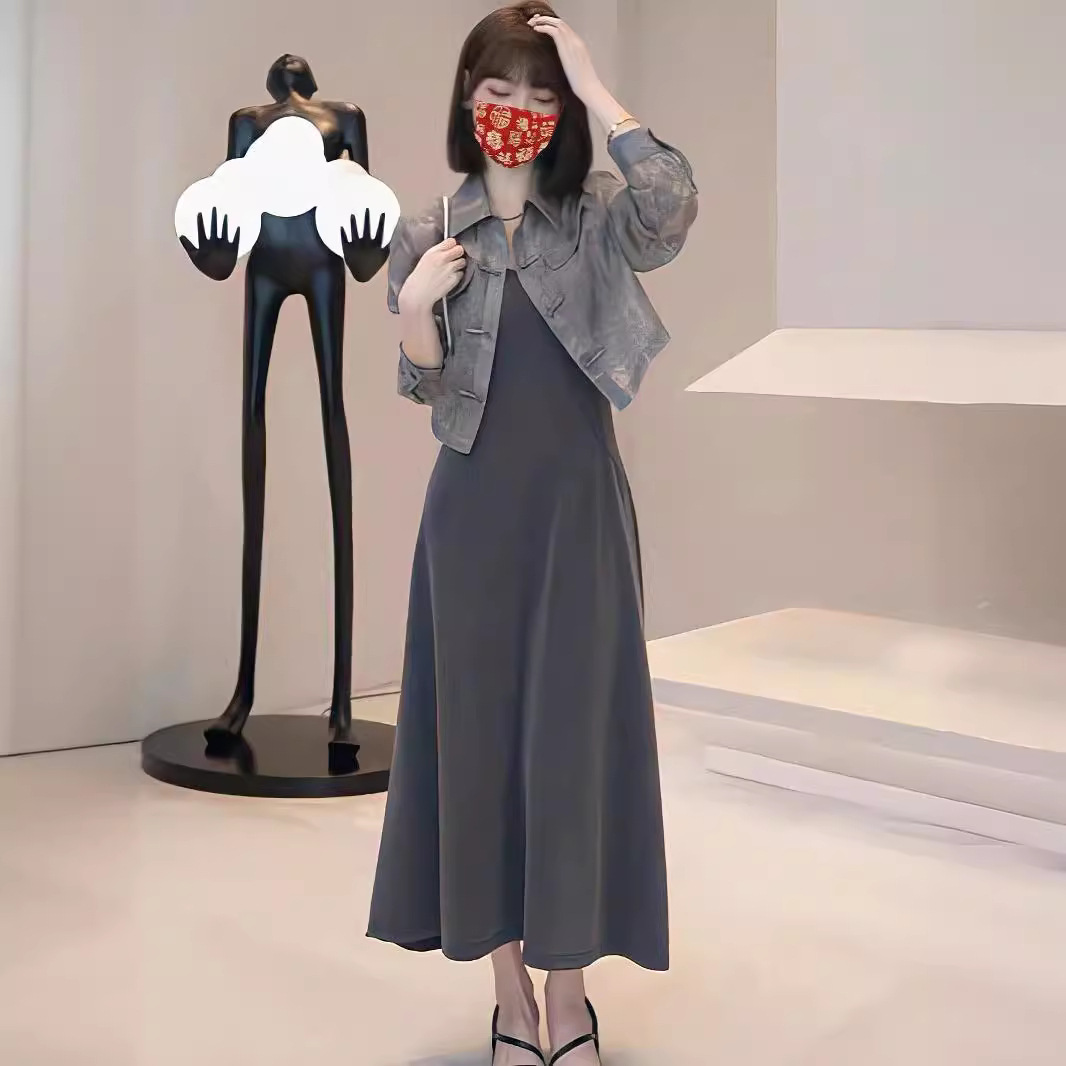 | nameOriginal | New Chinese Style National Style suit Women's Button Polo Collar Printed Shirt Slimming Elegant Fashionable Slip Skirt Two-Piece Set |