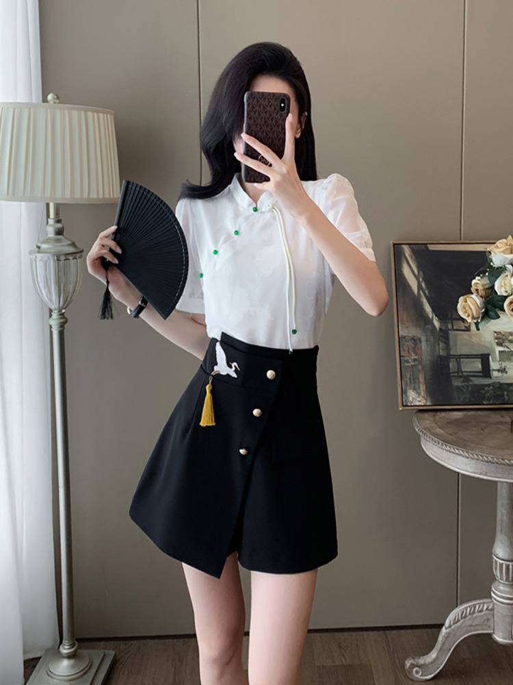 New Chinese Style National Style suit Women’s Summer 2024 New Fashion Age-reducing High-end Feeling Buckle Top Two-piece Set