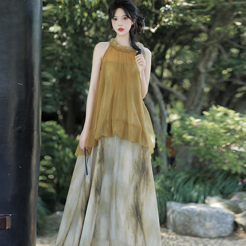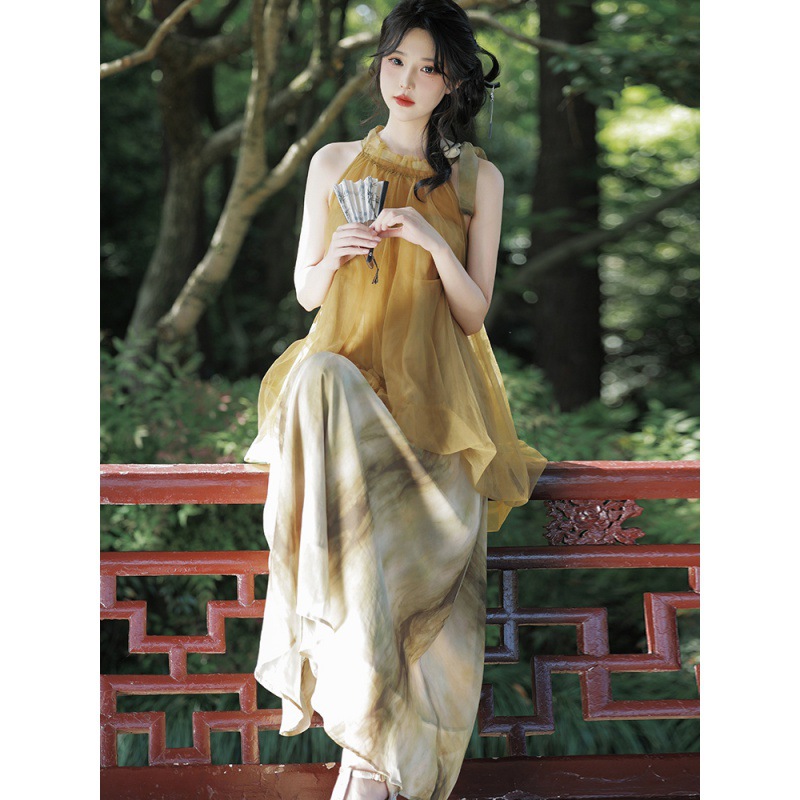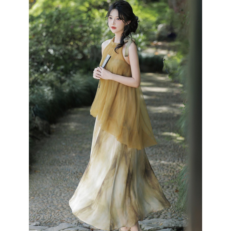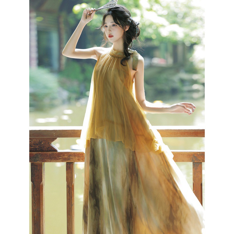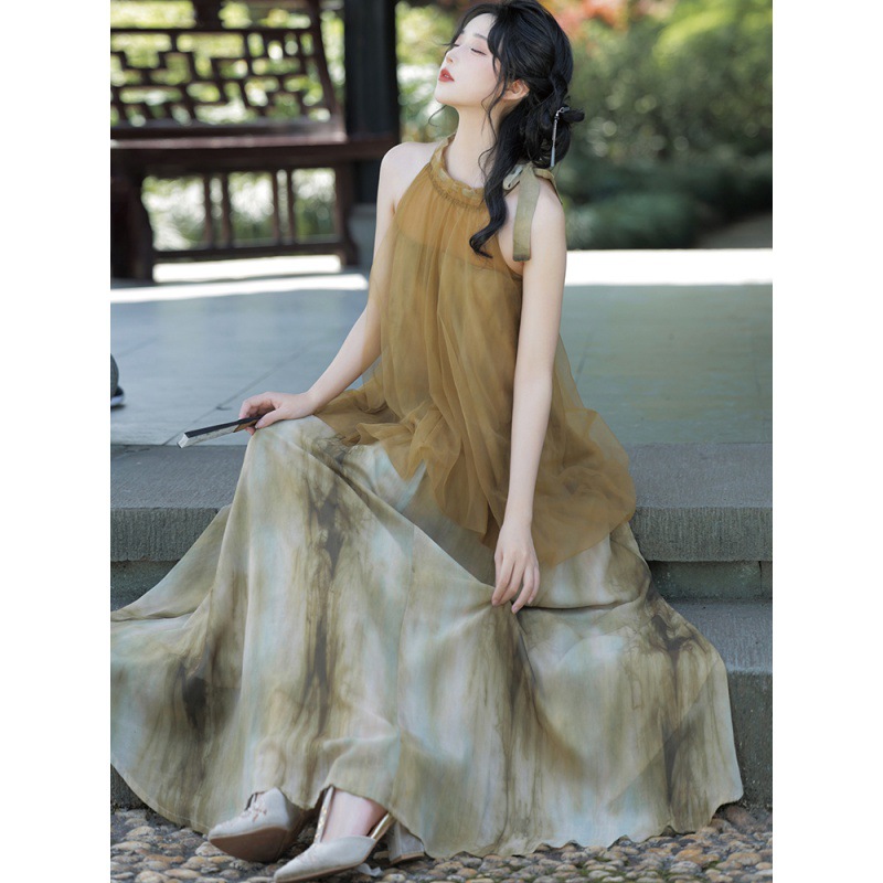 | nameOriginal | New Chinese Style National Style Temperament Fairy Holiday Beach Long Dress Mesh Stitching Tie-Dye Fake Two-piece Neck dress Summer |