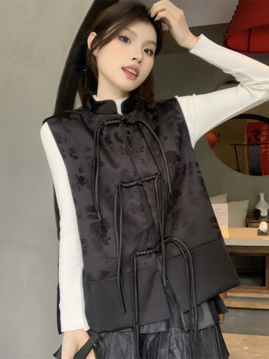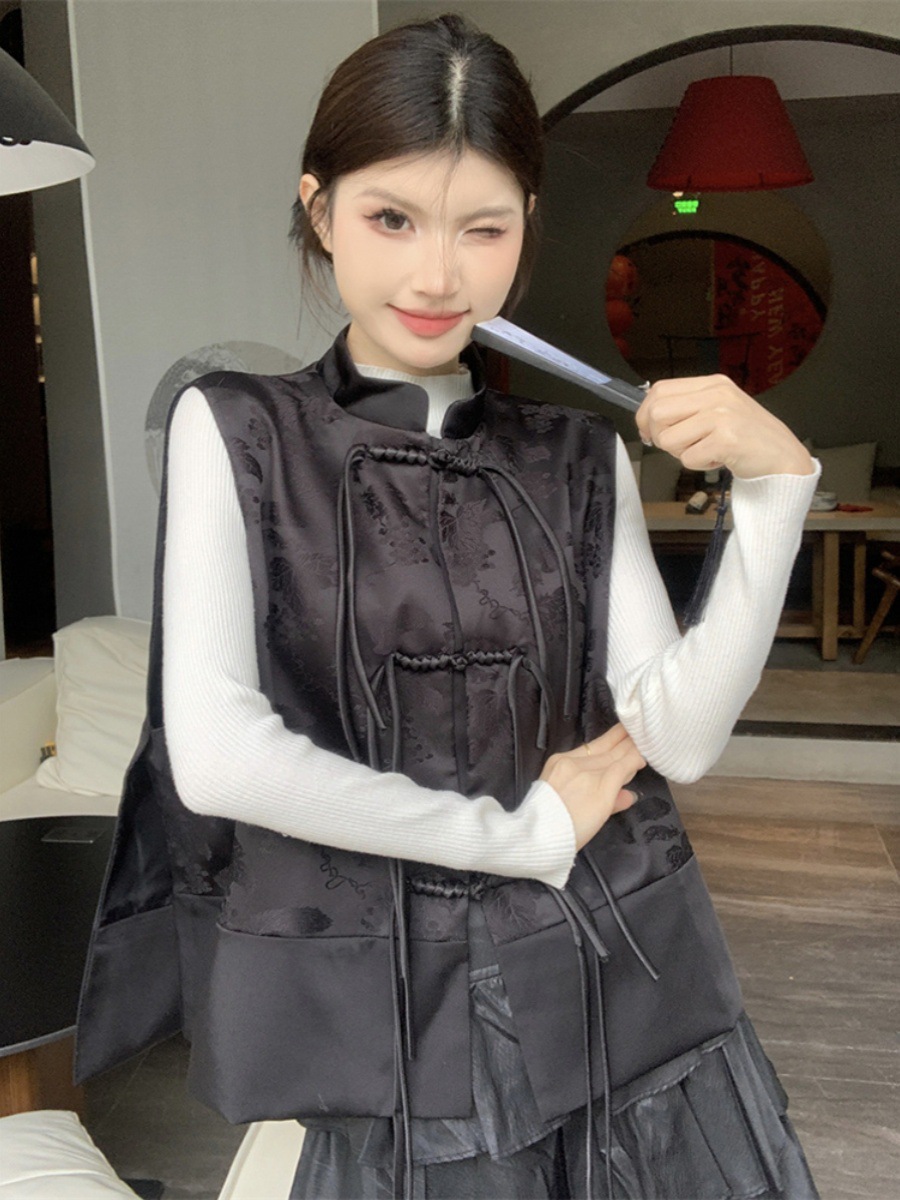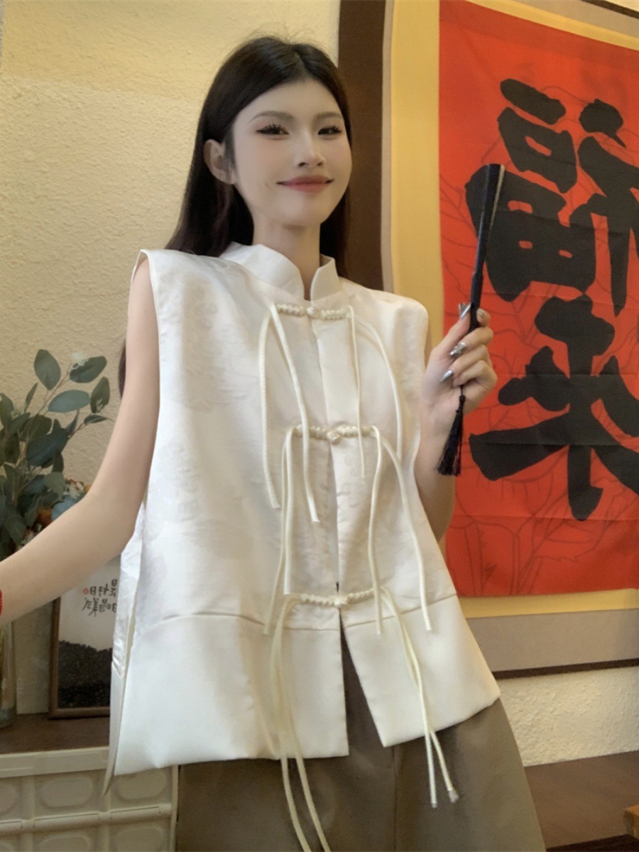 | nameOriginal | New Chinese Style National Style Vintage Buckle Vest Women's Spring 2024 New Fashion Western Style All-match Loose Collar Vest |