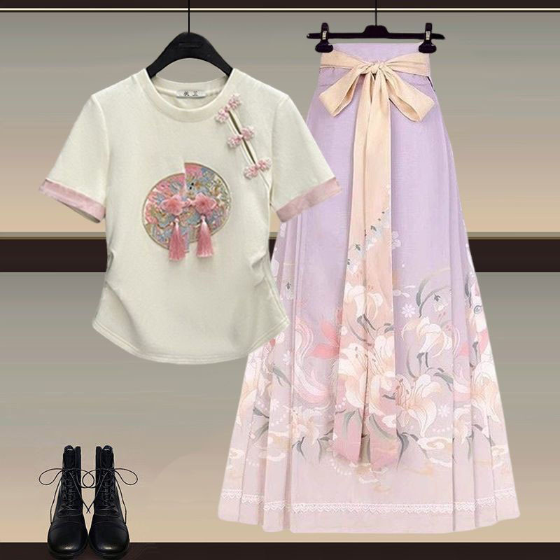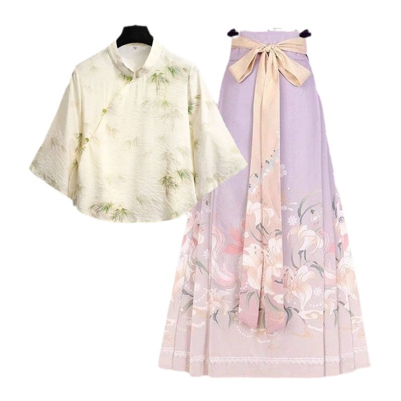 | nameOriginal | New Chinese Style National Style Wear a Set of Women's 2024 Summer New Improved Hanfu Top with Horse Face Skirt Two-piece Set |