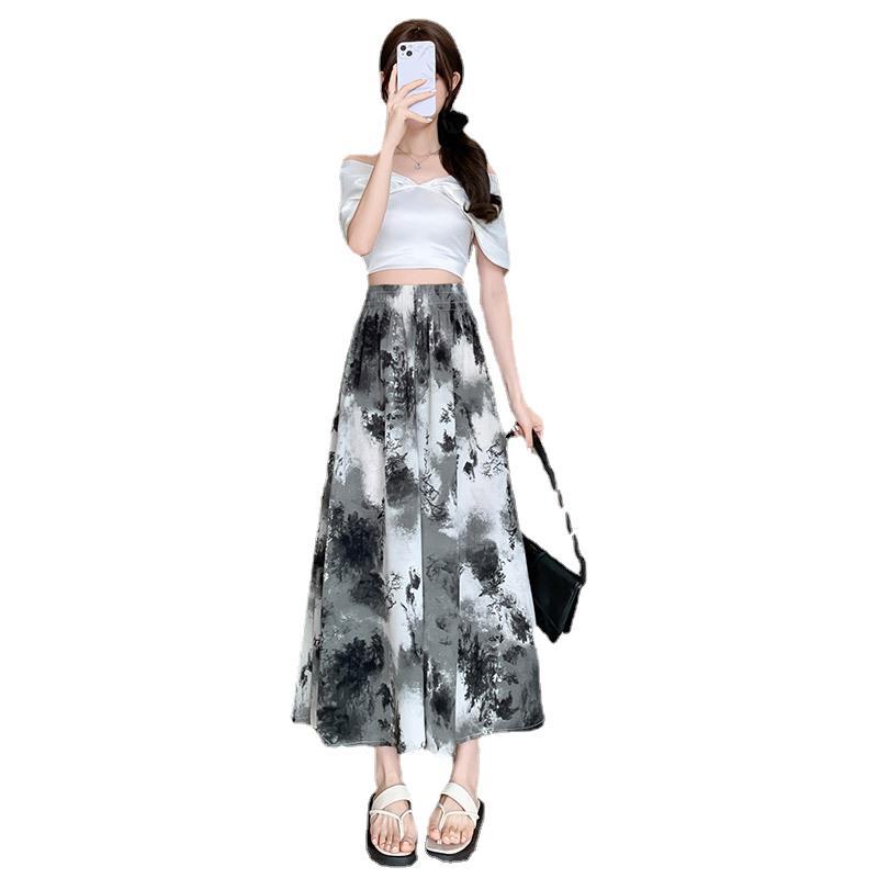 | nameOriginal | New Chinese Style National Style Wide Leg Pants and Skirt Women's 2024 New Vintage Ink Painting Floral Draped Summer New Casual Pants |