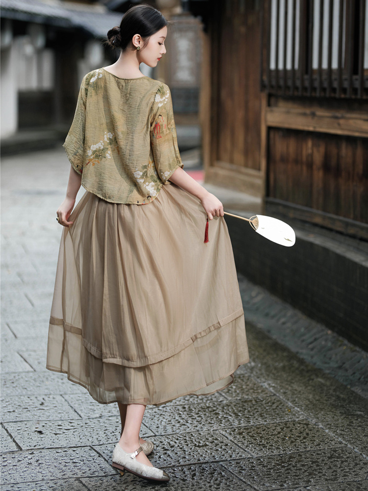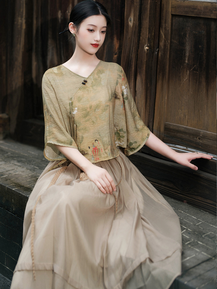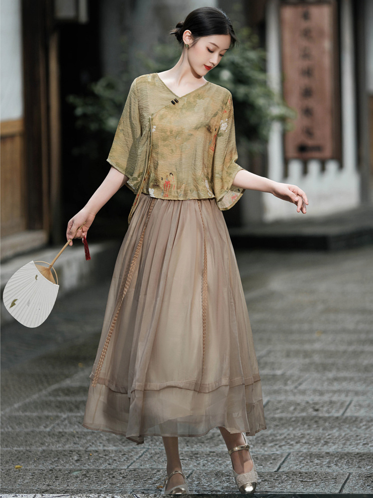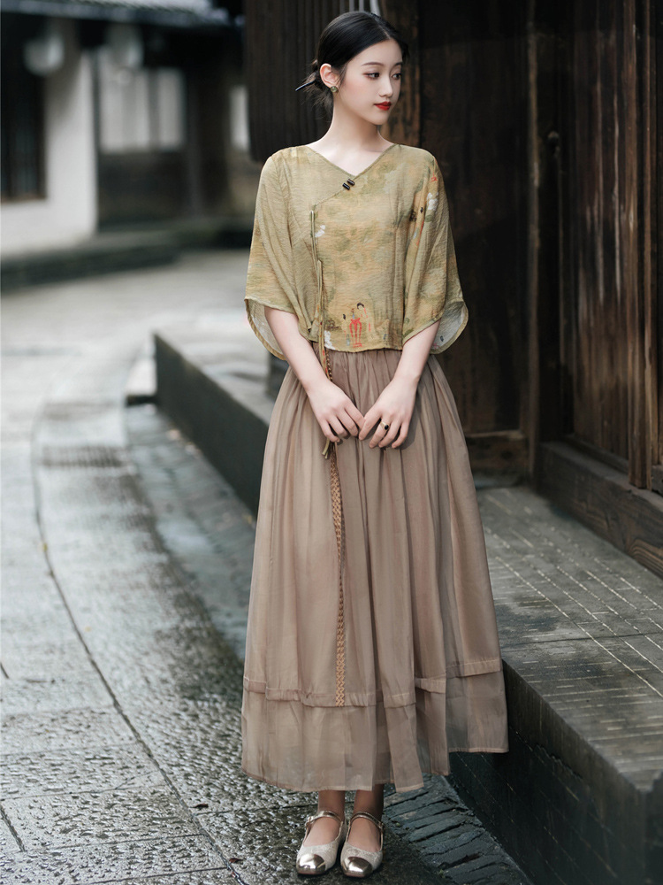 | nameOriginal | New Chinese Style National Style Women's Suit Vintage Printed Modified Cheongsam Top Overskirt Ancient Chinese Costume Two-piece Tea Suit |