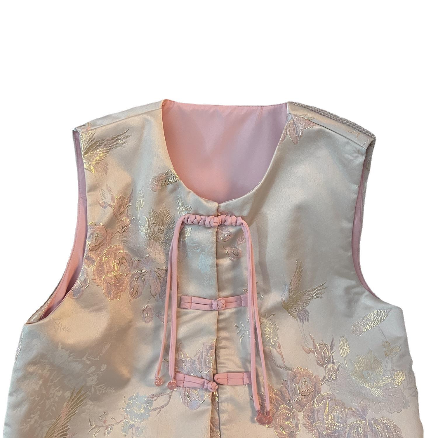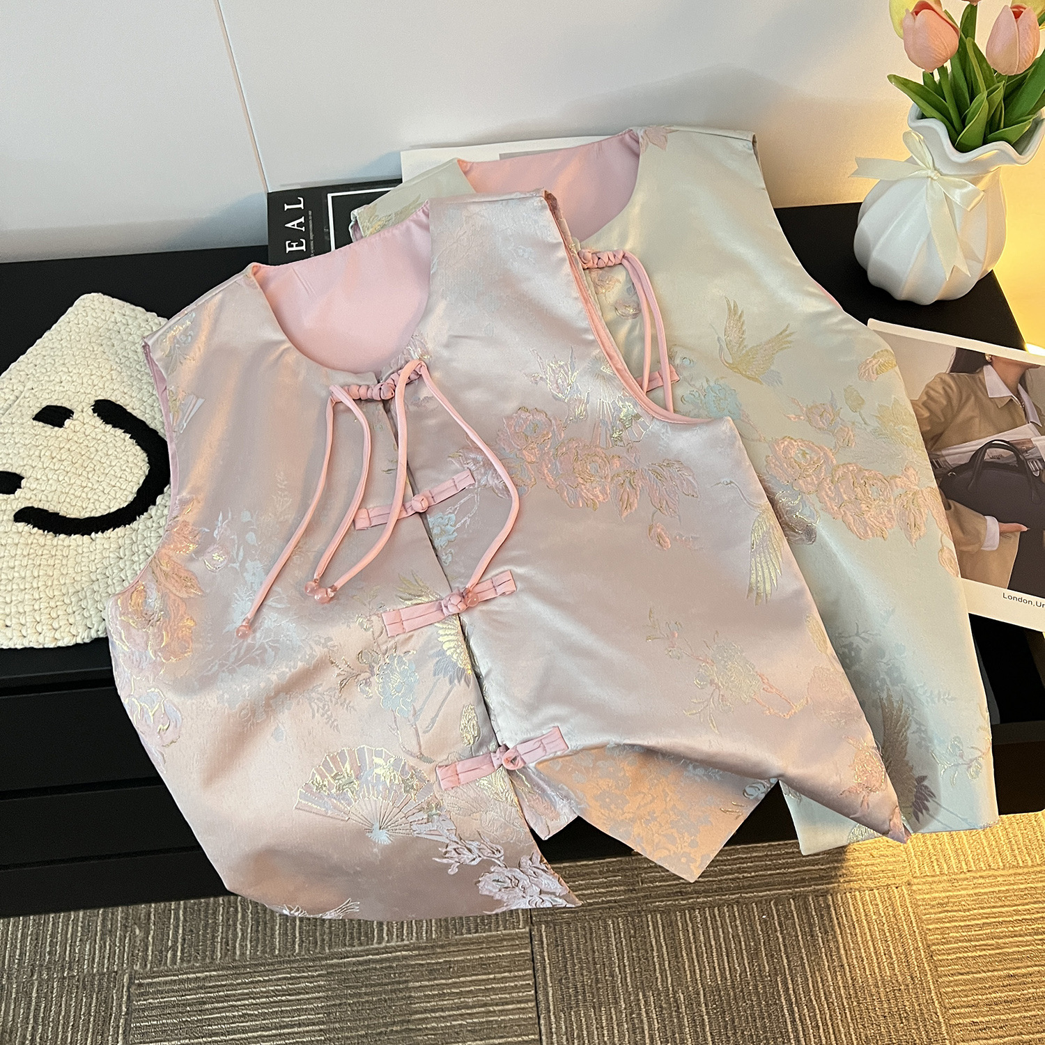 | nameOriginal | New Chinese style nostalgic jacquard buckle vest for women 2024 early spring new European Zen satin embroidered top |