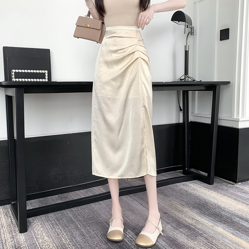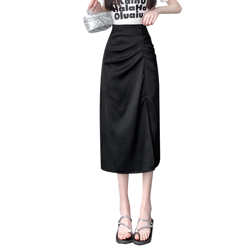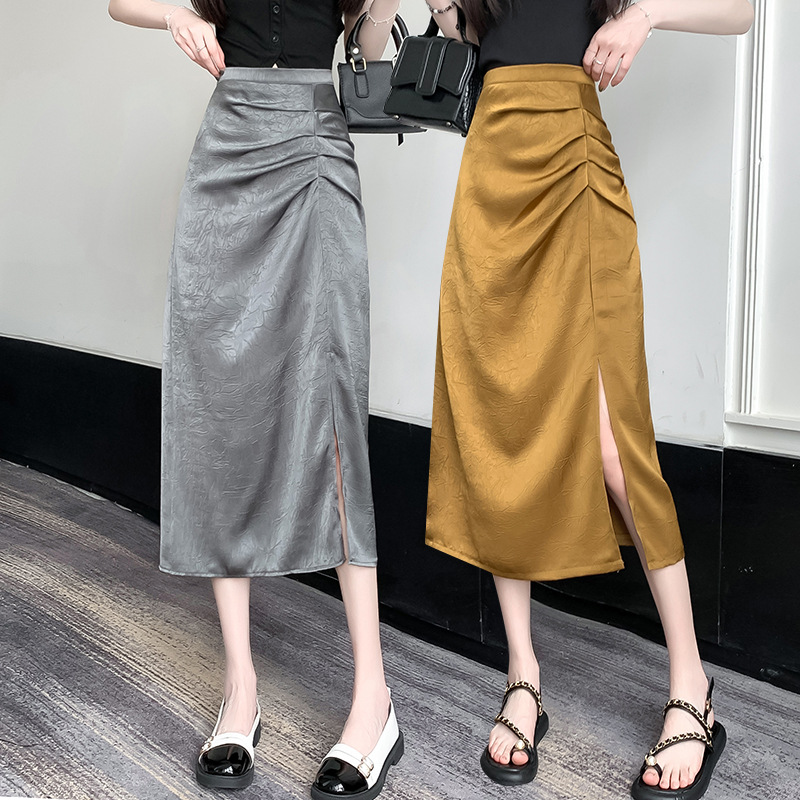 | nameOriginal | New Chinese-style Pleated Skirt Women's Summer Split Acetate Mid-length Skirt High-grade Satin Wrapping Hip Step Half Skirt |
