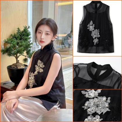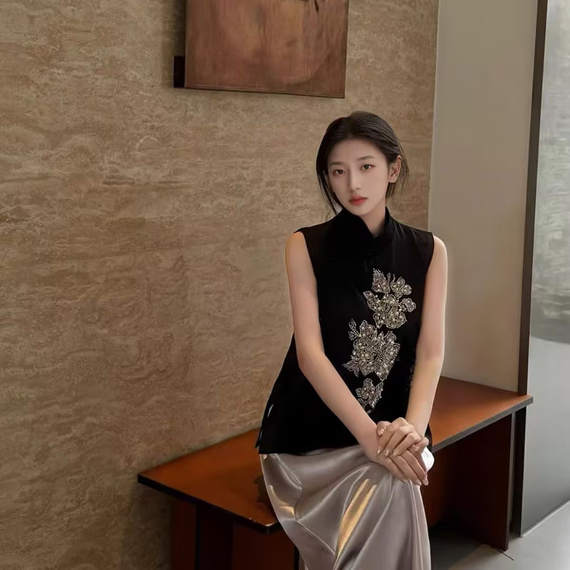 | nameOriginal | New Chinese-style Retro Buckle Heavy Industry Design Sense Vest Women's Elegant Vertical Collar Thin Vest Top M5045 |