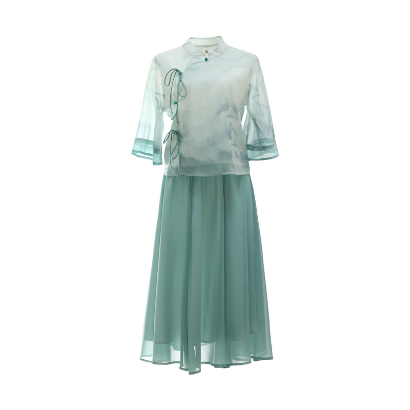 | nameOriginal | New Chinese Style Retro Collar Ink Bamboo Printing Tang Suit Han Elements Improved Hanfu Cheongsam Top Guofeng Tea Clothing suit |