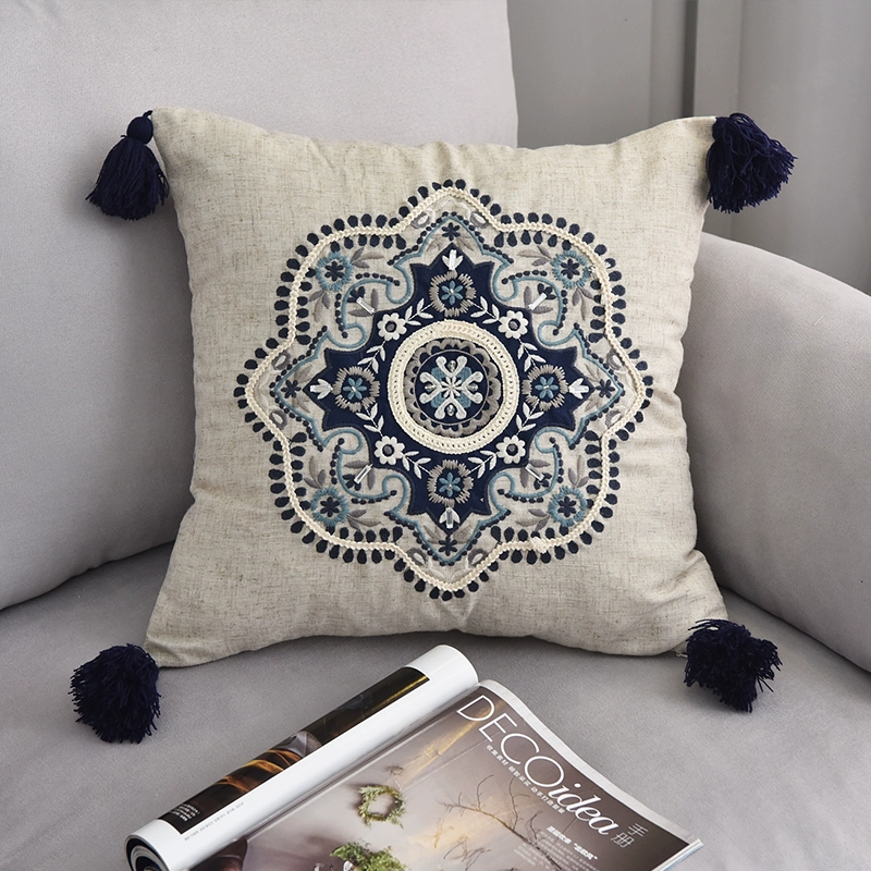 | nameOriginal | New Chinese style retro embroidered flower cushion cover B&B hotel model room pillow living room sofa pillow American rope embroidery |