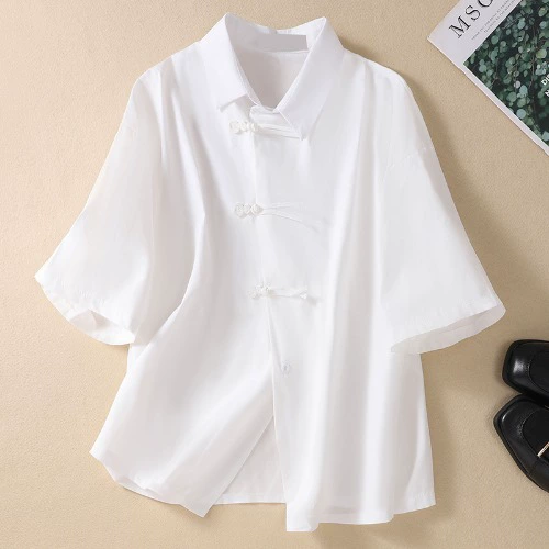 | nameOriginal | New Chinese style retro oblique placket buttoned short-sleeved versatile top |