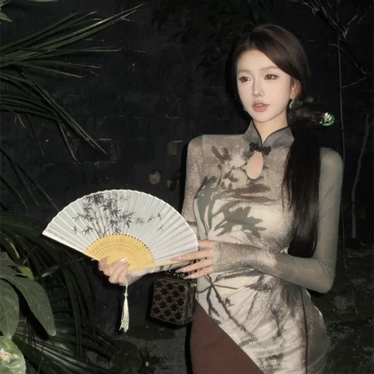New Chinese style retro print summer slim long sleeve T-shirt