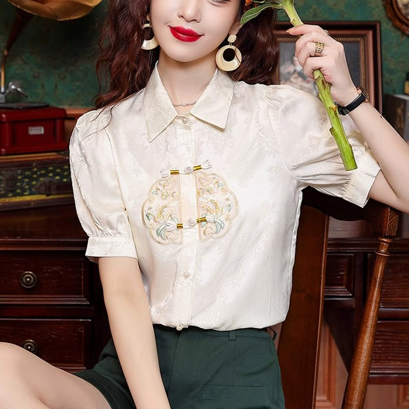 New Chinese style retro short sleeve summer jacquard disc button embroidery