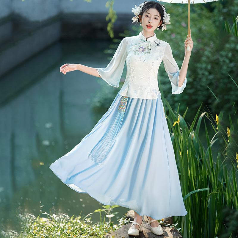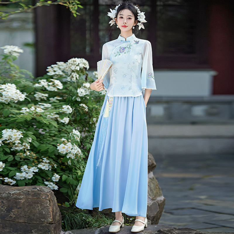 | nameOriginal | New Chinese Style Retro Stand Collar Embroidered Tang Suit Han Element Improved Hanfu Cheongsam Top Guofeng Zen Tea Suit suit Women |