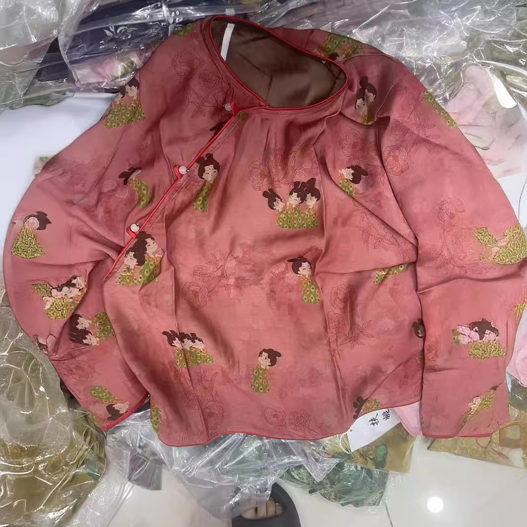 | nameOriginal | New Chinese-style Satin Acetate Printed Shirt Women's Laid-back National Style Improved Slant-breasted Round Neck Silk Top Loose Small Shirt |