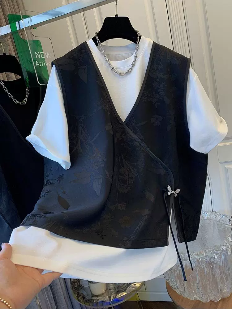 New Chinese vest short-sleeved loose bow buckle