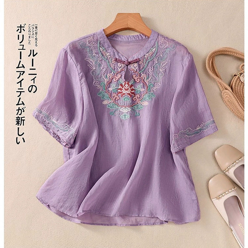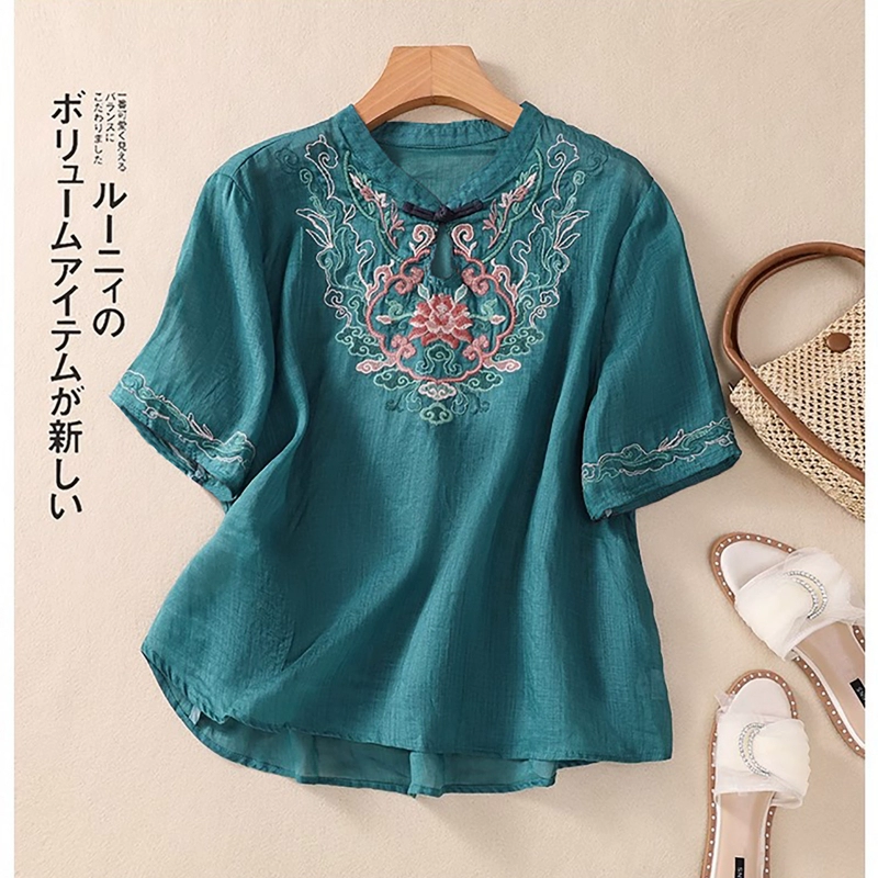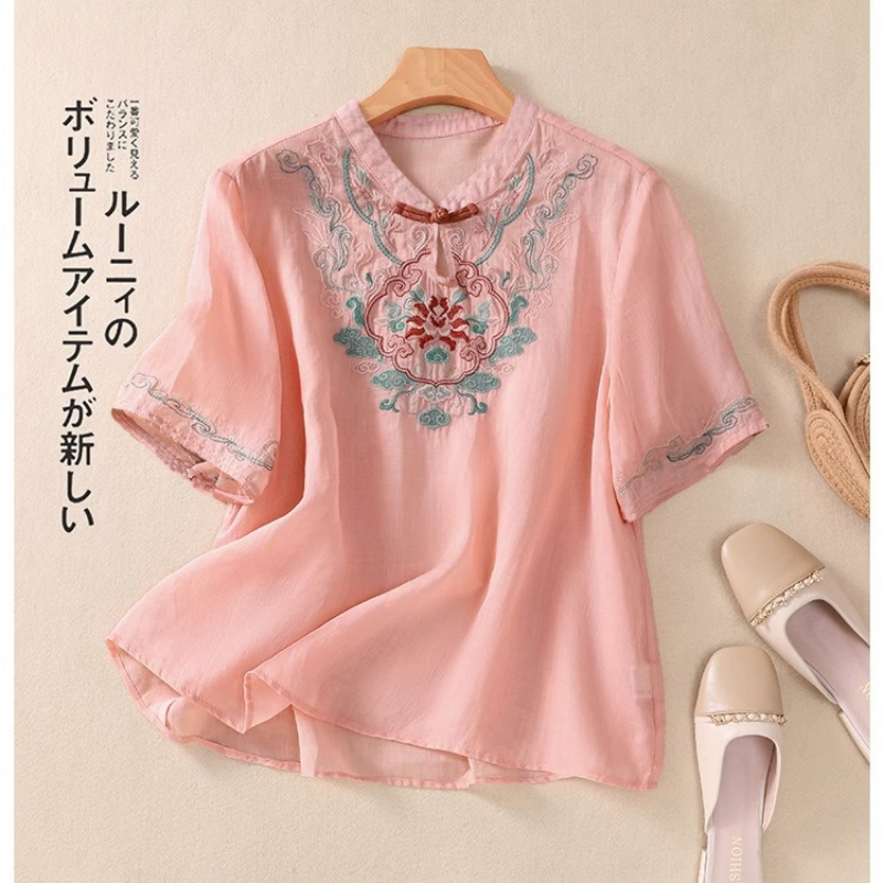 New Chinese style short-sleeved national style loose top with thin embroidery