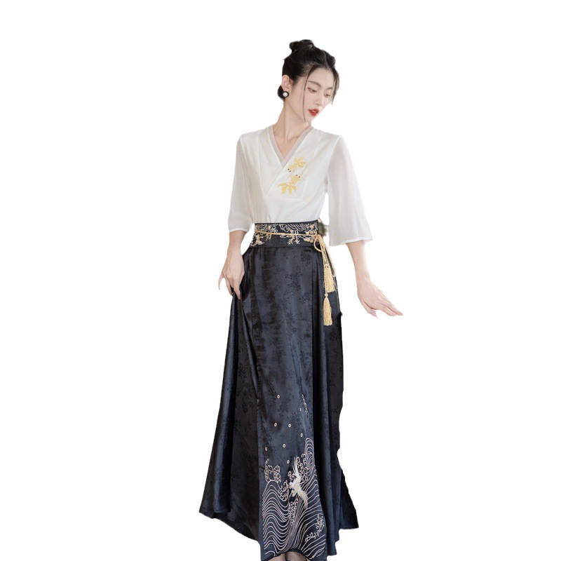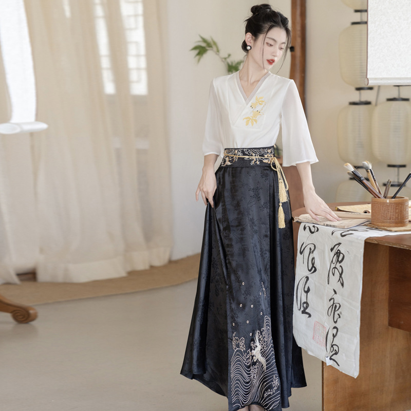| nameOriginal | New Chinese style simple embroidered top improved elastic waist high-end Lady's vest skirt waist seal suit |
