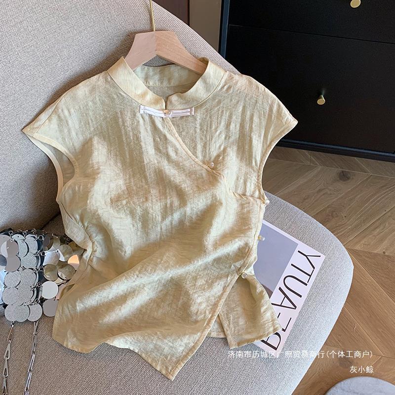 | nameOriginal | New Chinese Style Slant Placket Button Irregular Short-sleeved Shirt Women's 2024 Summer New National Style Improved Cheongsam Zen Top |