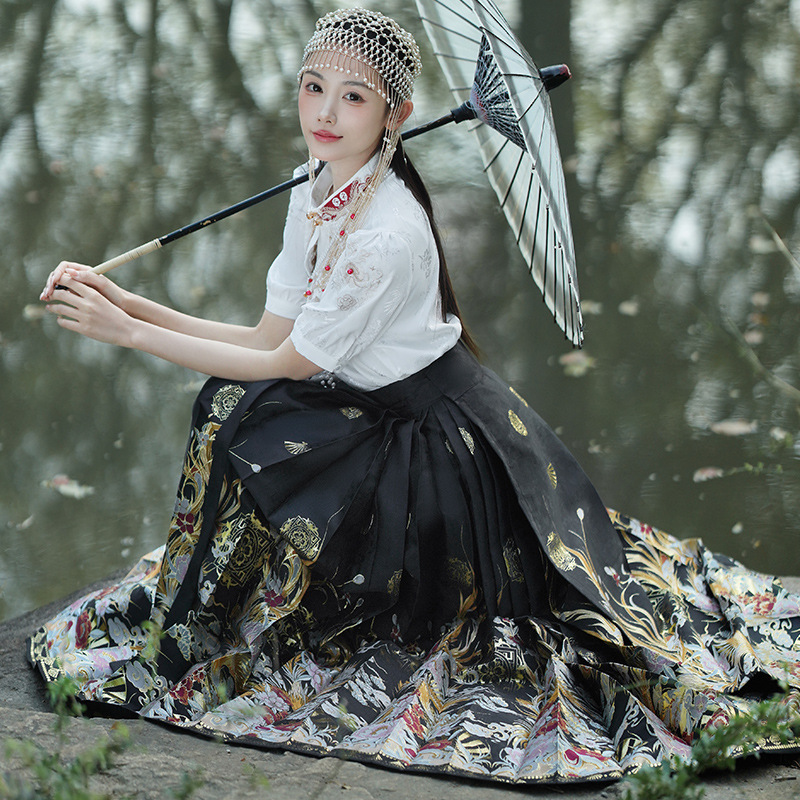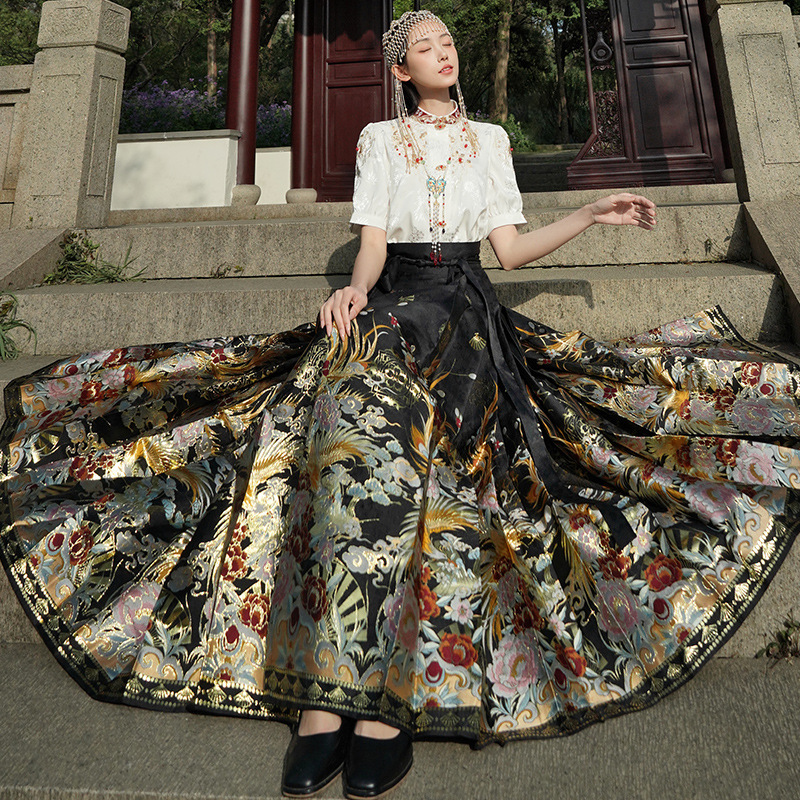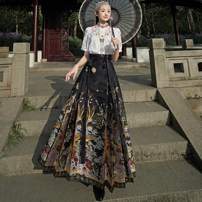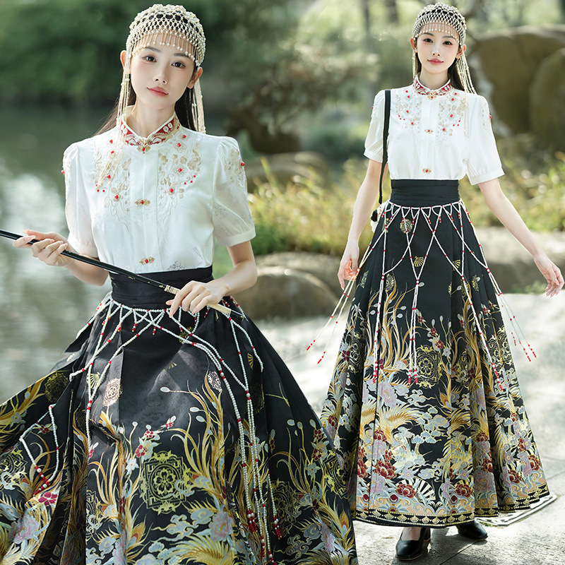 | nameOriginal | New Chinese-style stand collar buckle ethnic style embroidered shirt one-piece horse-faced skirt suit women's classical style wholesale |
