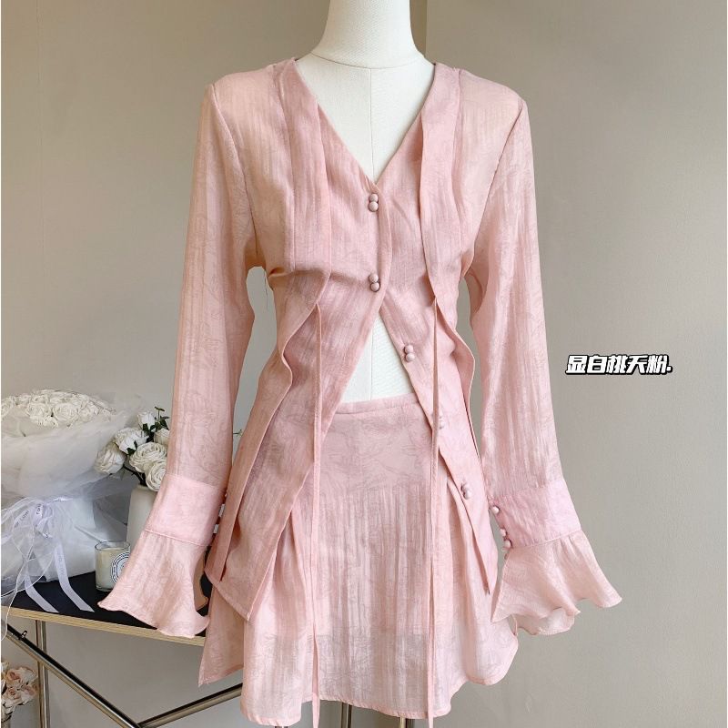 New Chinese Style suit 2024 Summer Top Solid Color All-match Casual Shirt Women's Small Guofeng Two-piece New Style