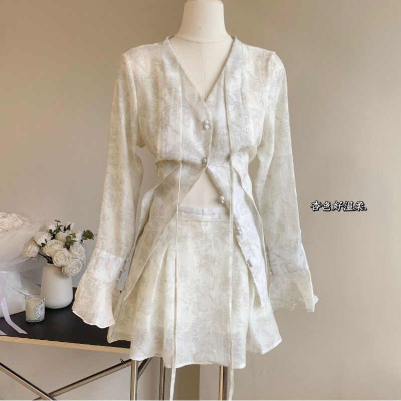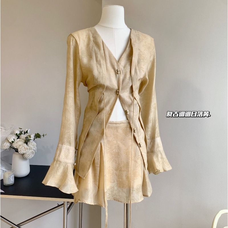 New Chinese Style suit 2024 Summer Top Solid Color All-match Casual Shirt Women’s Small Guofeng Two-piece New Style