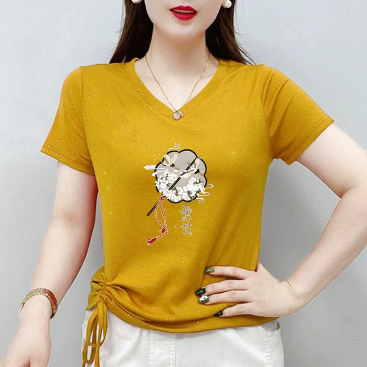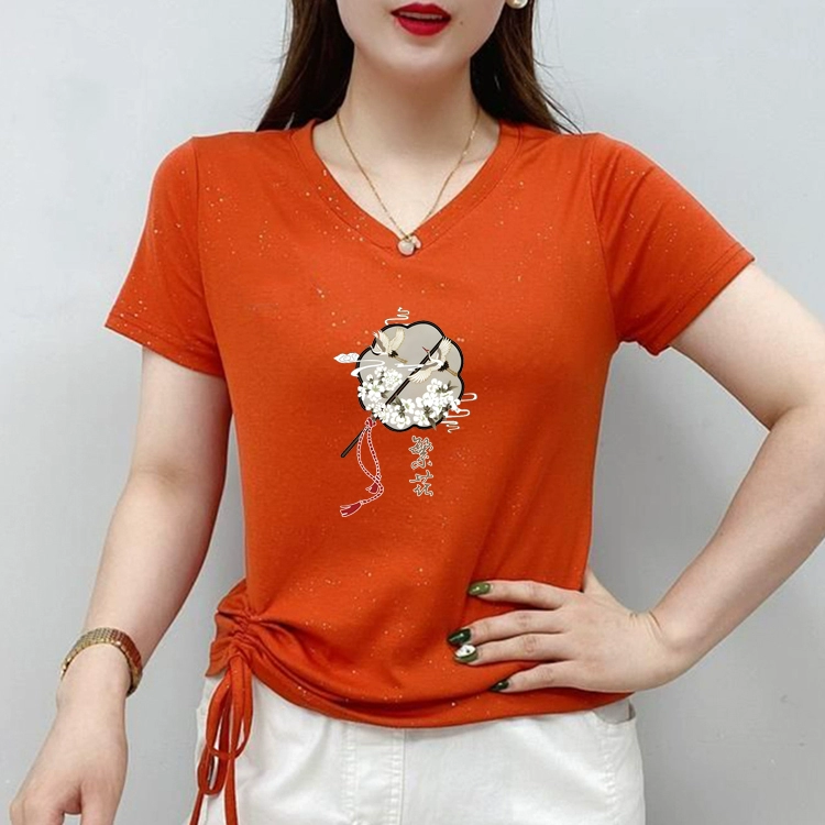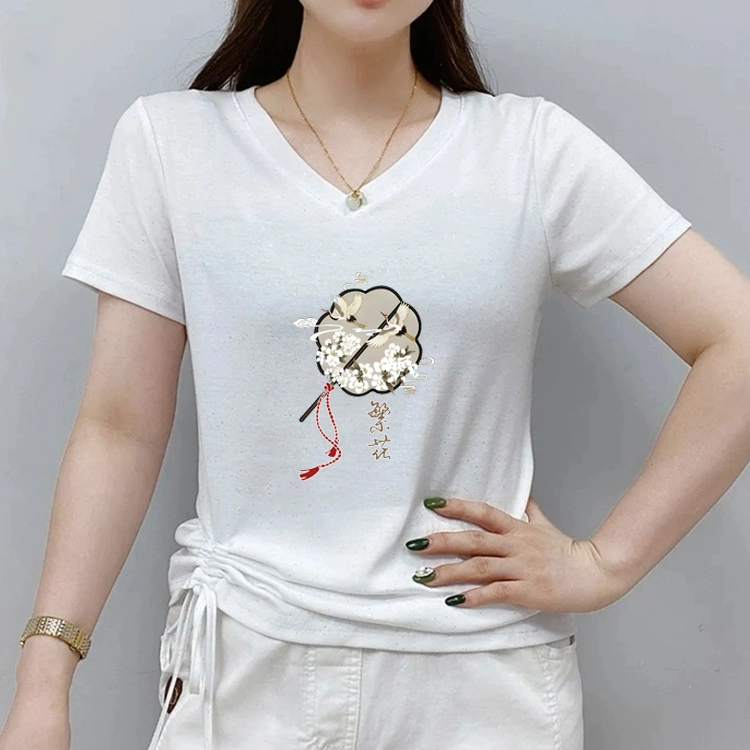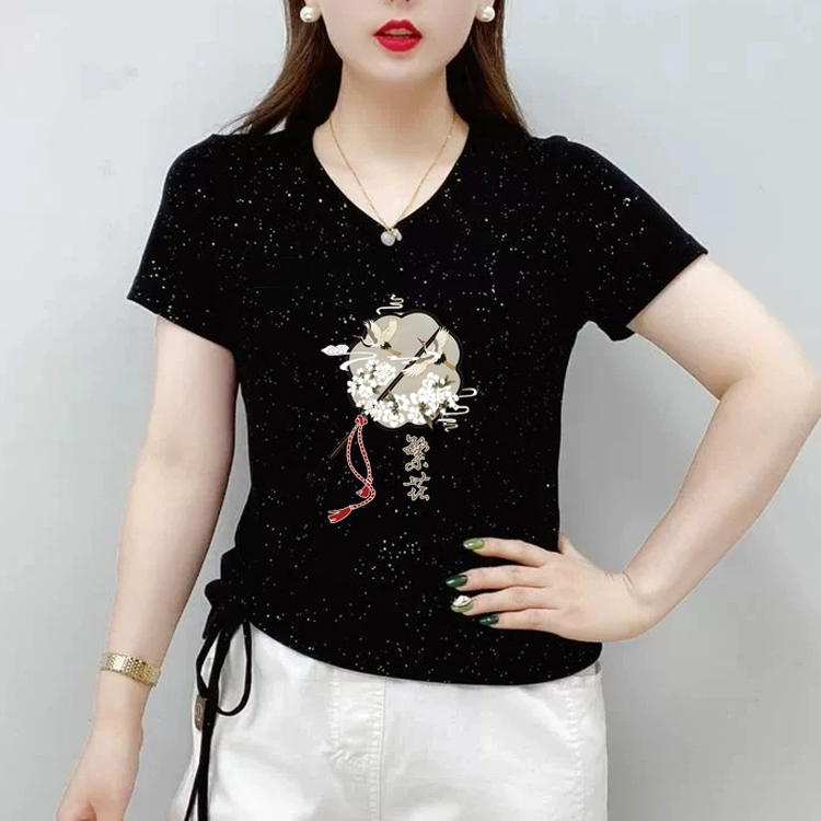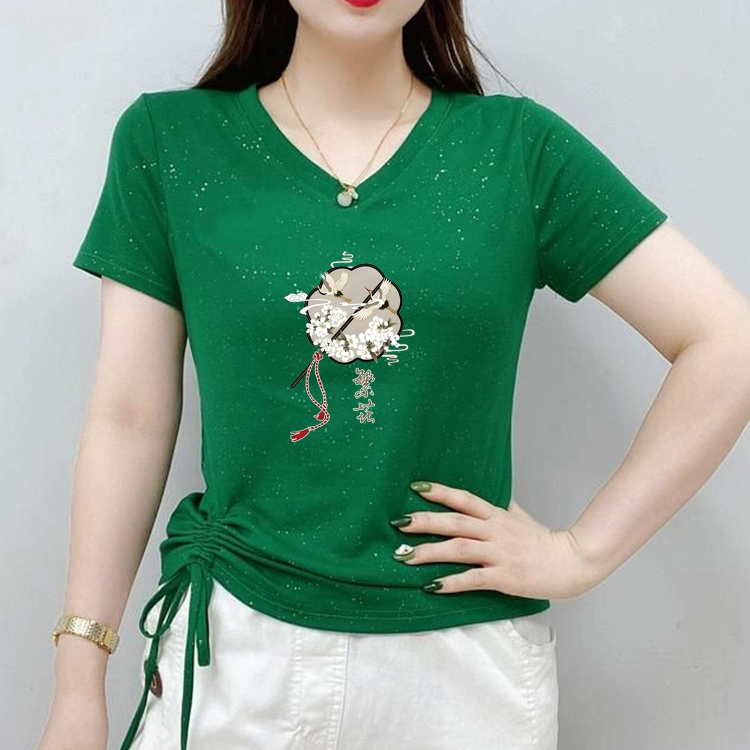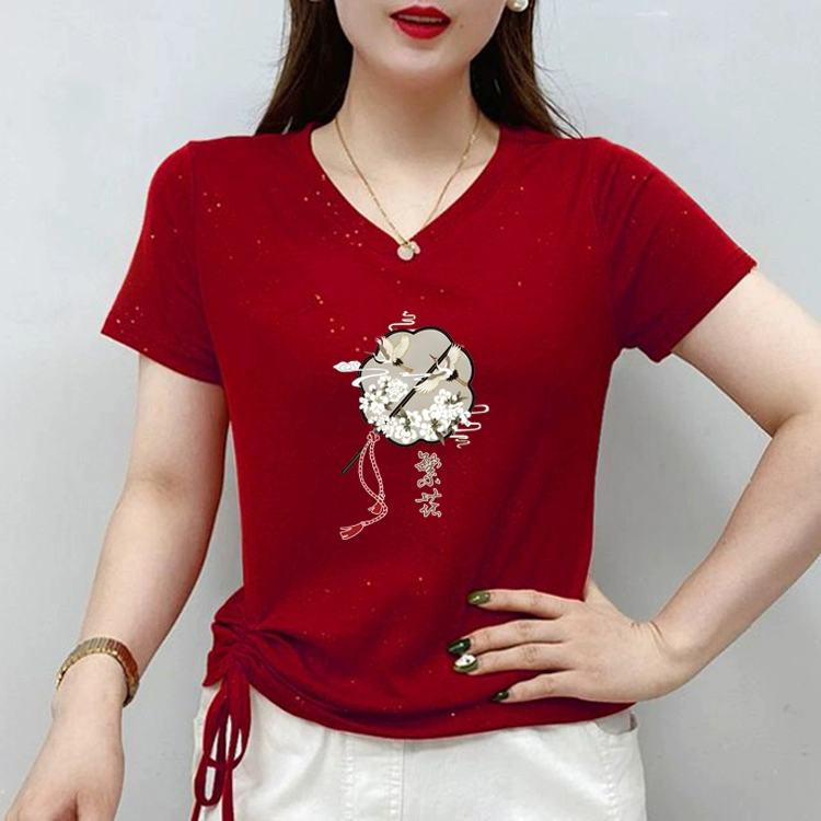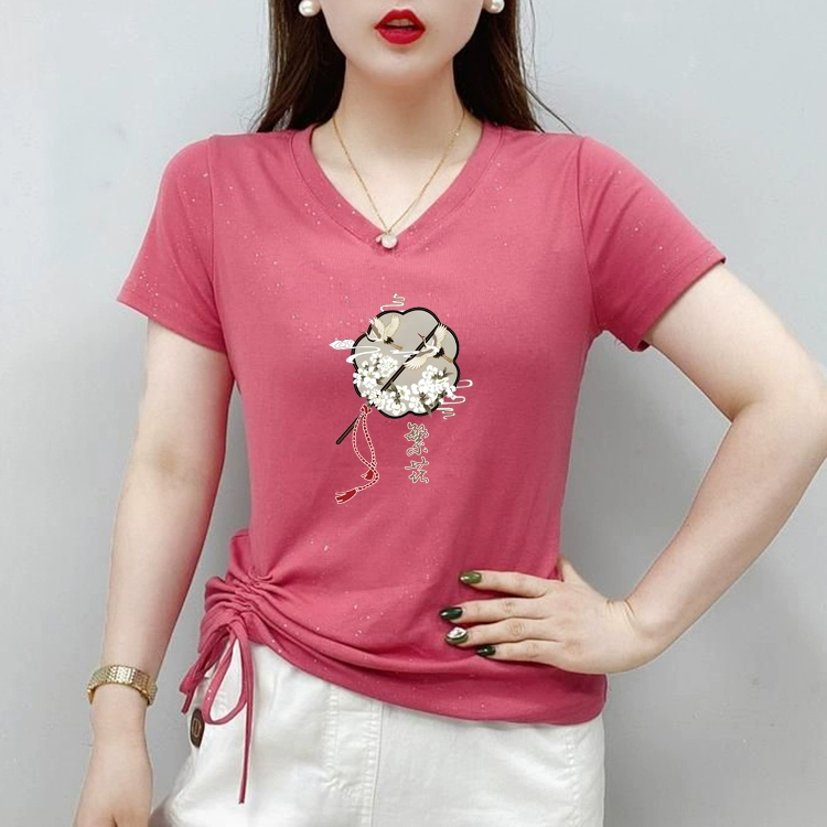 | nameOriginal | New Chinese style V-neck short-sleeved T-shirt for women 2024 new summer half-sleeved large size sweetheart neck T-shirt top |