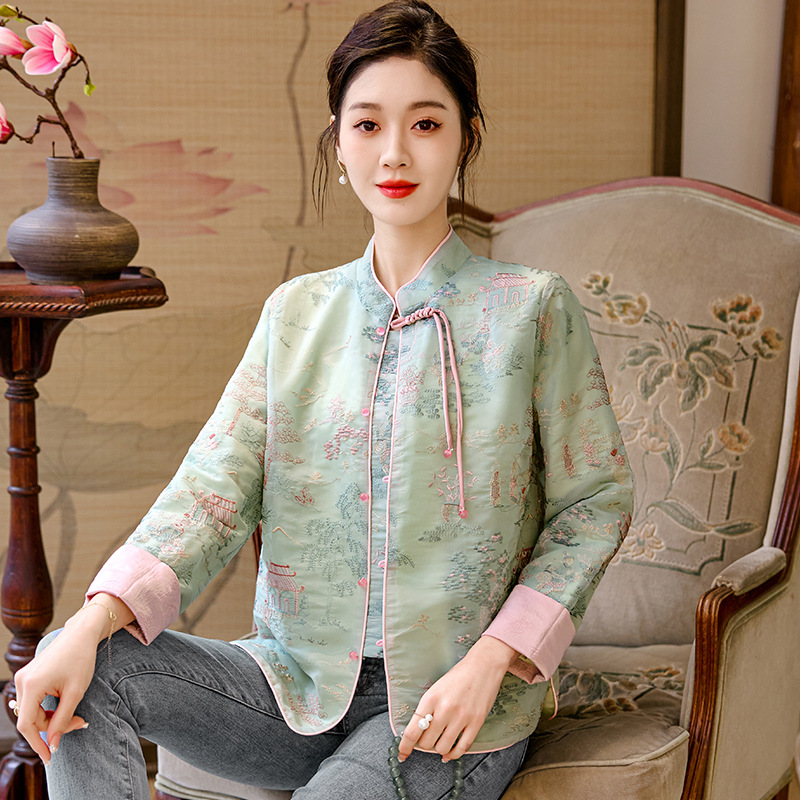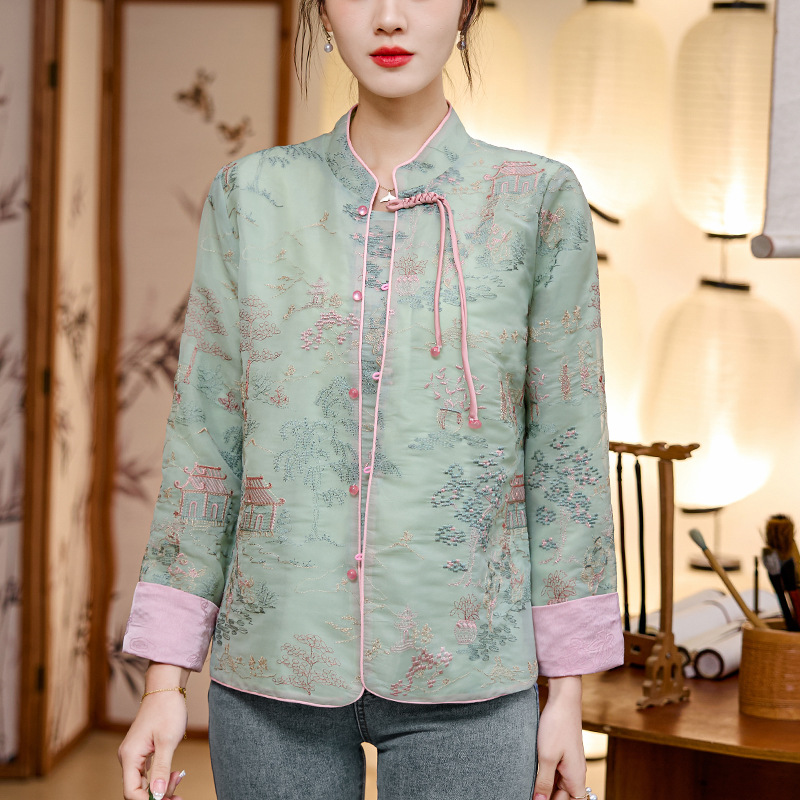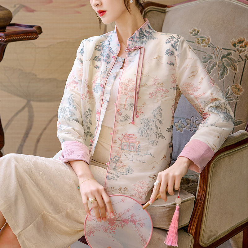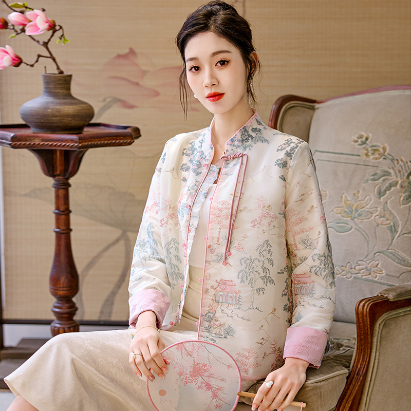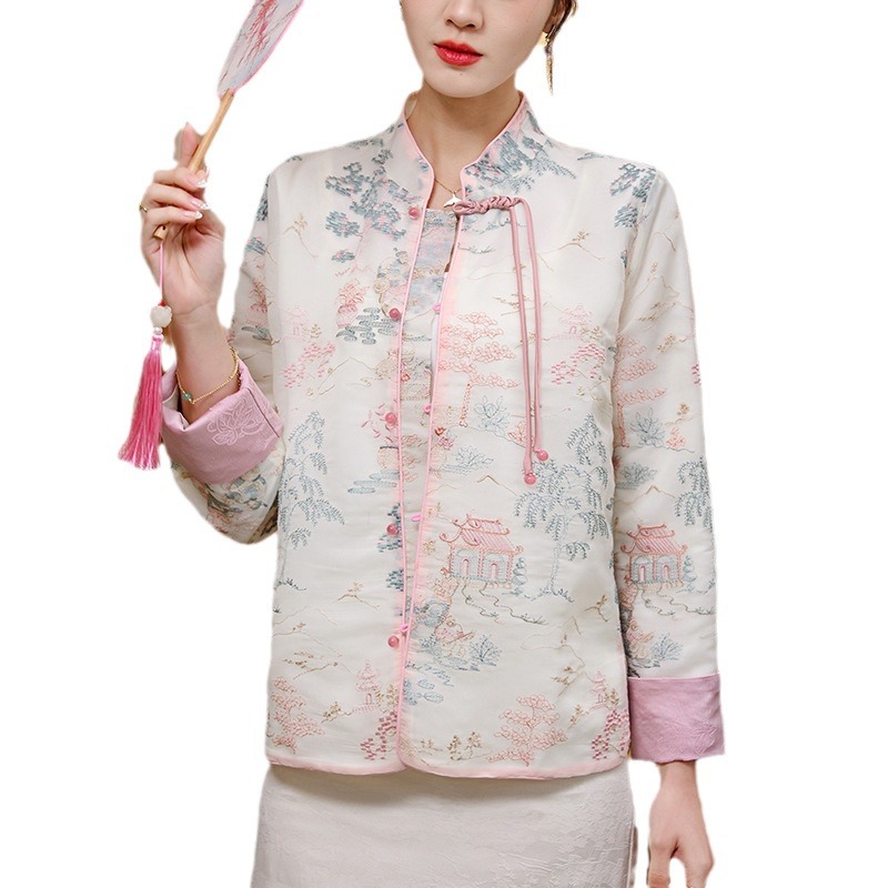 New Chinese style white coat for women 2024 spring new high-grade national style Zen button short top for women