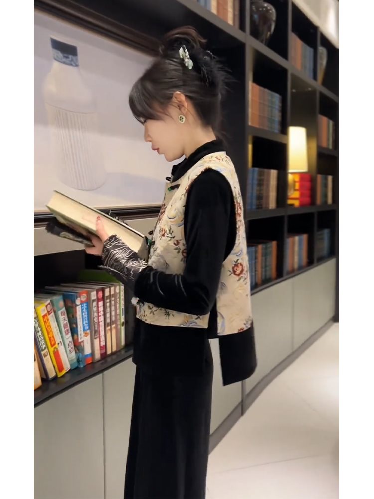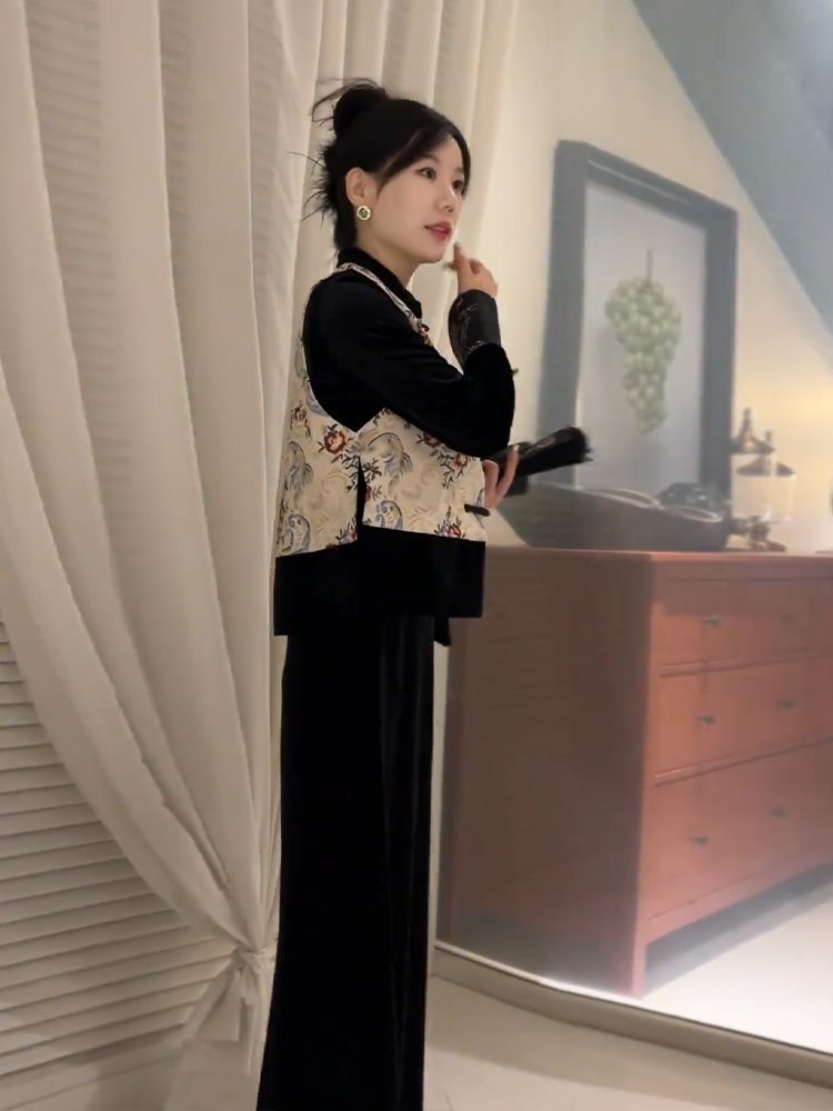 | nameOriginal | New Chinese style women's clothing 2024 new popular this year beautiful little fragrant style vest suit gold velvet dress |