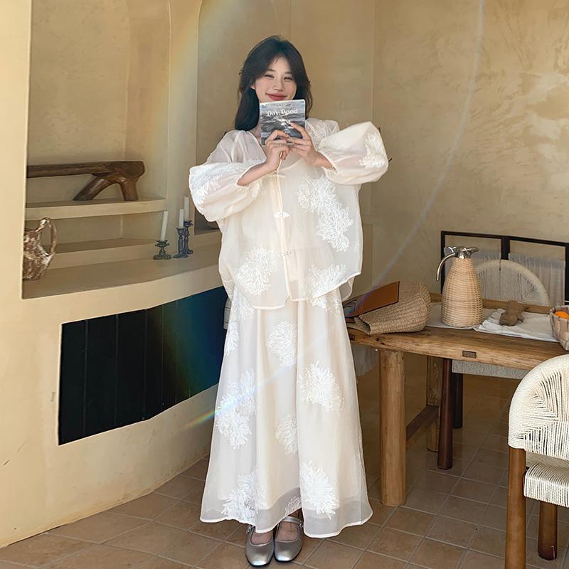 New Chinese Style Women’s Clothing Chinese Style Wear a Set of Cool Zen Style Antique Style Top Skirt Three-Piece Set for Summer