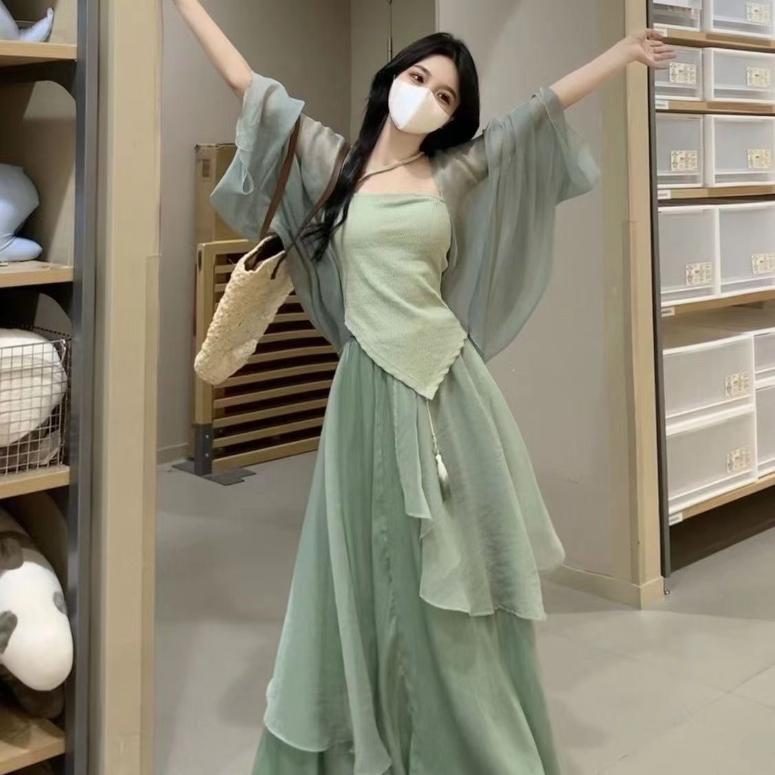 | nameOriginal | New Chinese Style Women's Clothing National Style Improved Hanfu Han Element Daily Small Green Dress Three-piece Suit Women |