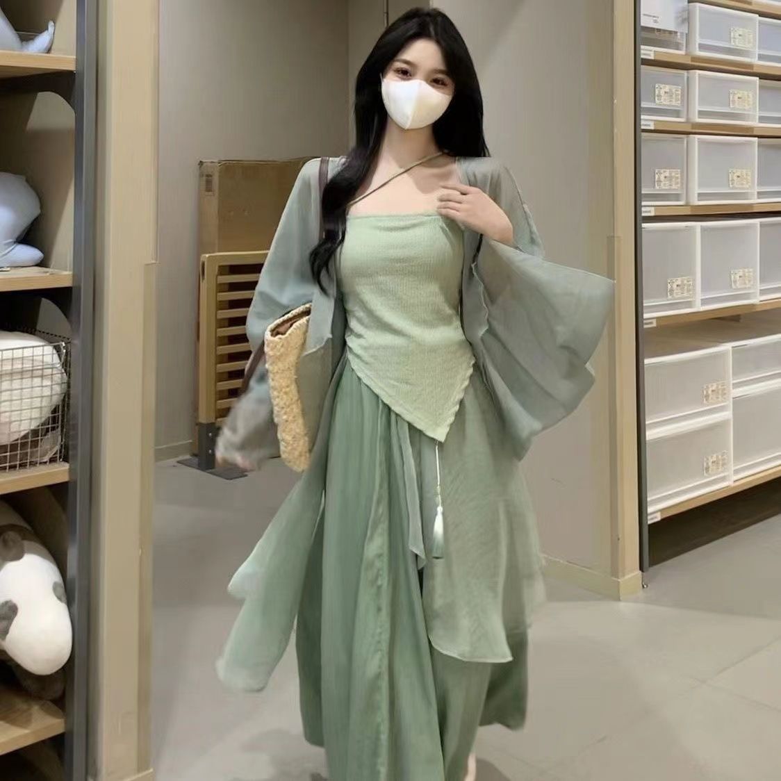 | nameOriginal | New Chinese Style Women's Clothing National Style Improved Hanfu Han Element Daily Small Green Dress Three-piece Suit Women |