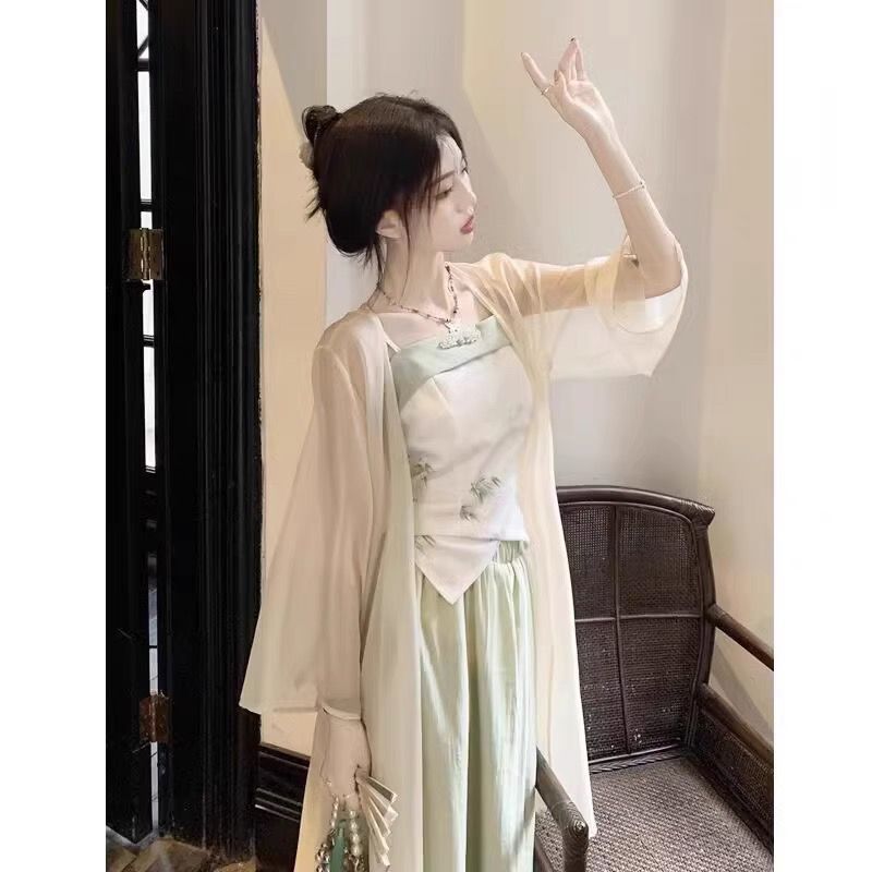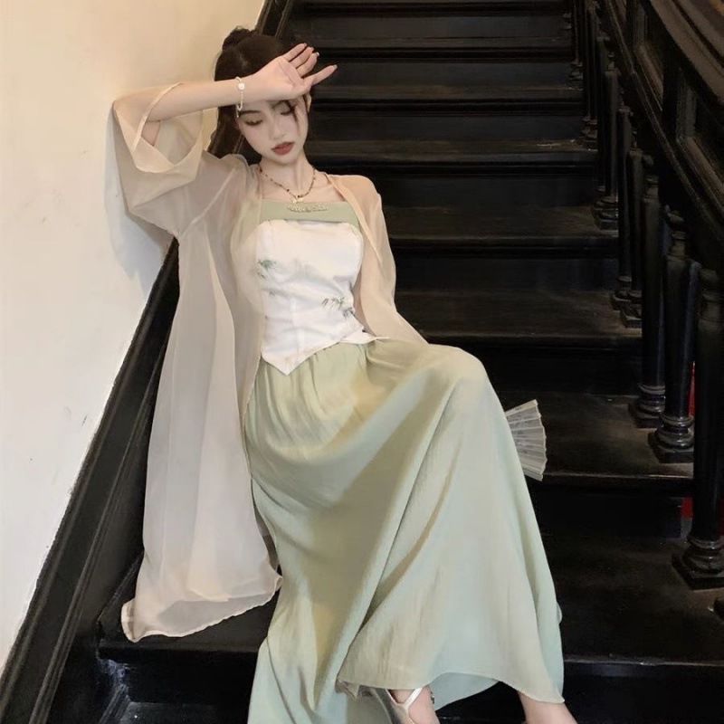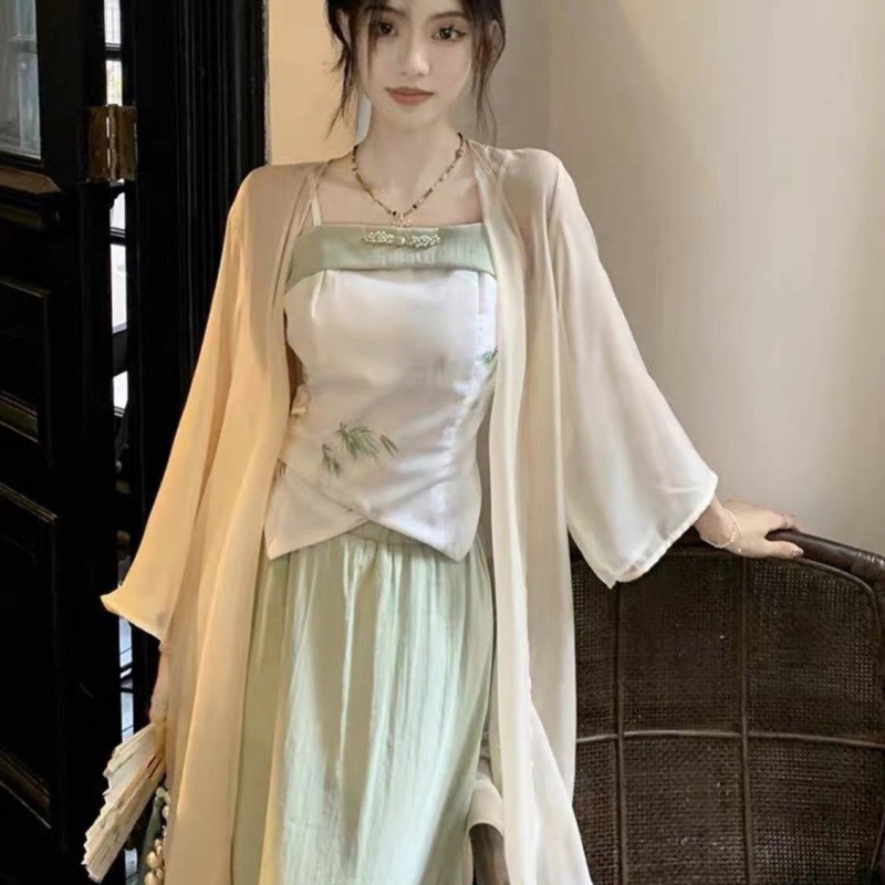 | nameOriginal | New Chinese Style Women's Clothing National Style Improved Hanfu Han Element Green Sling dress Three-piece Suit for Women Summer |