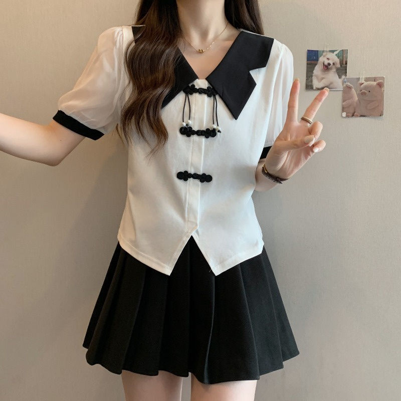 New Chinese Style Women’s Clothing Retro Button Short Sleeve Shirt Women’s 2024 Summer New Slimming Top Design Niche Female