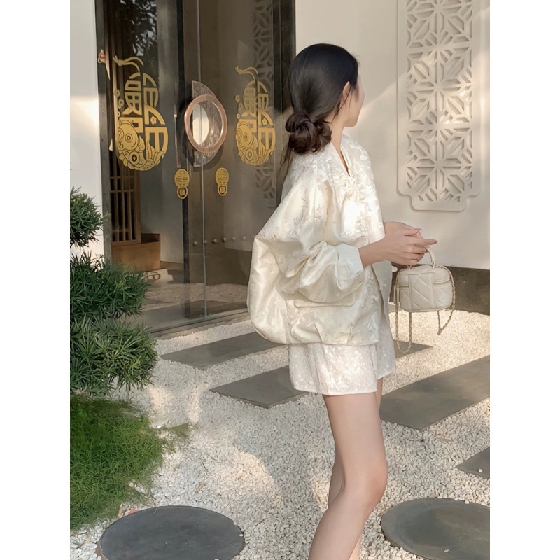 New Chinese style women’s clothing suit women’s 2024 spring new national style high-end socialite temperament High sense shorts two-piece set