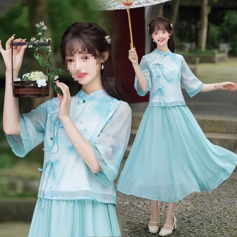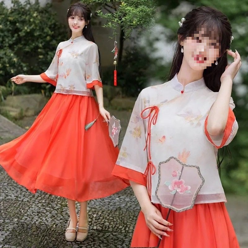 | nameOriginal | New Chinese Style Women's Two-Piece Summer Chinese Style 2024 Retro Dopamine New Top Modified Hanfu Skirt |