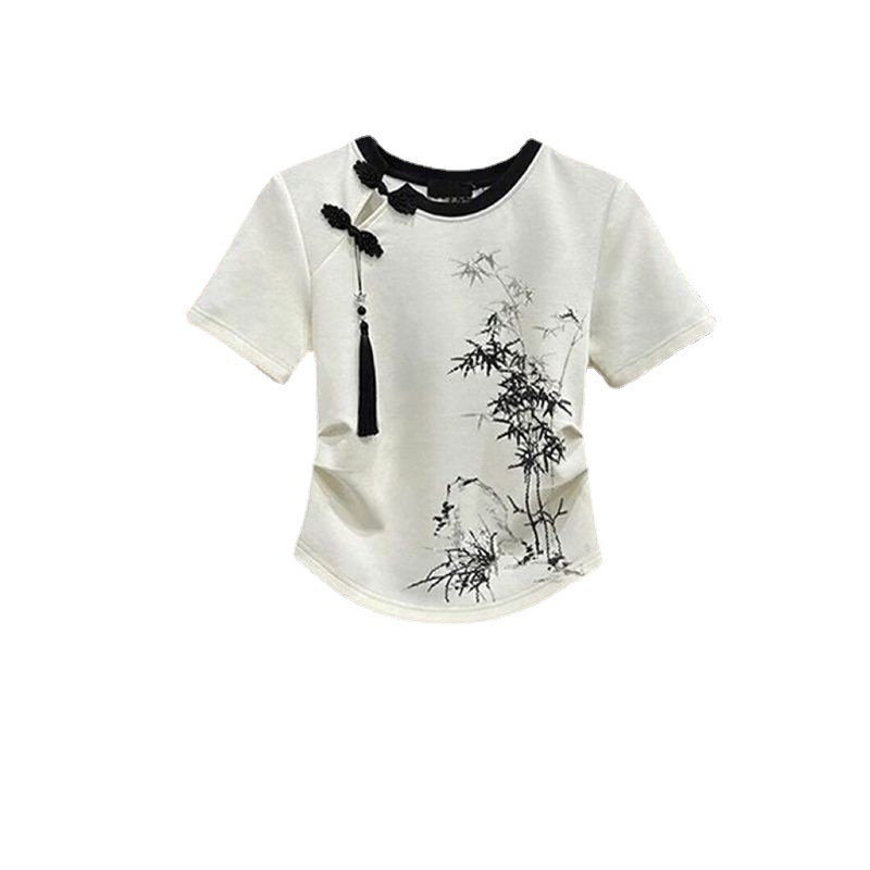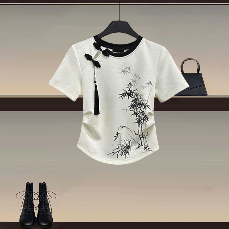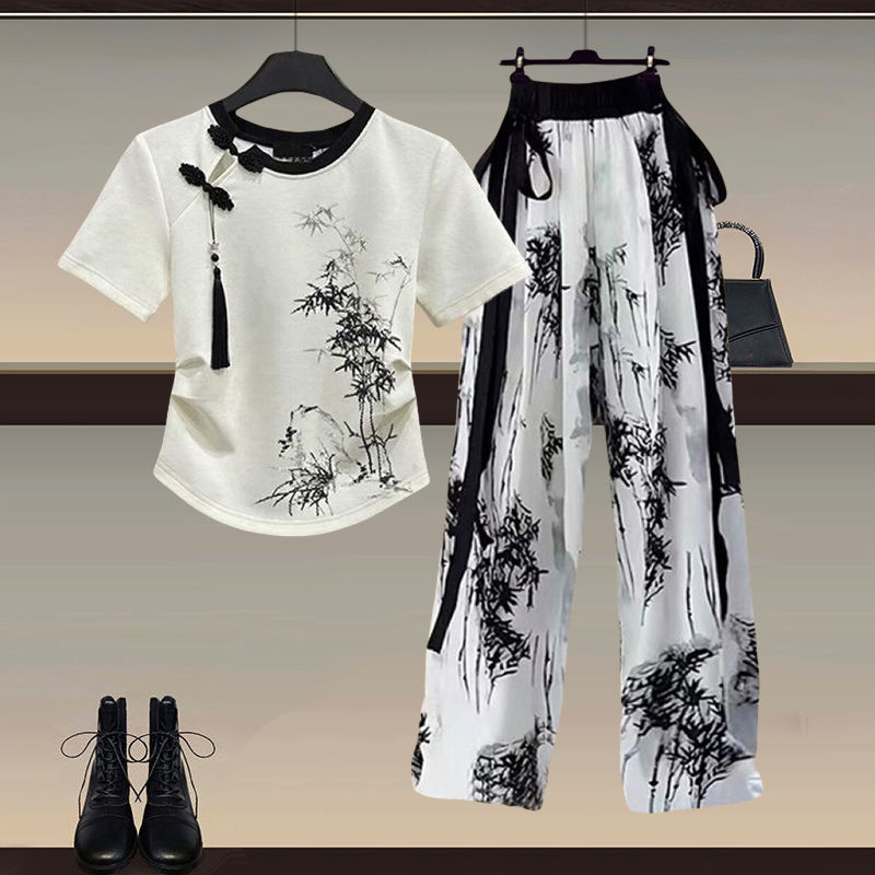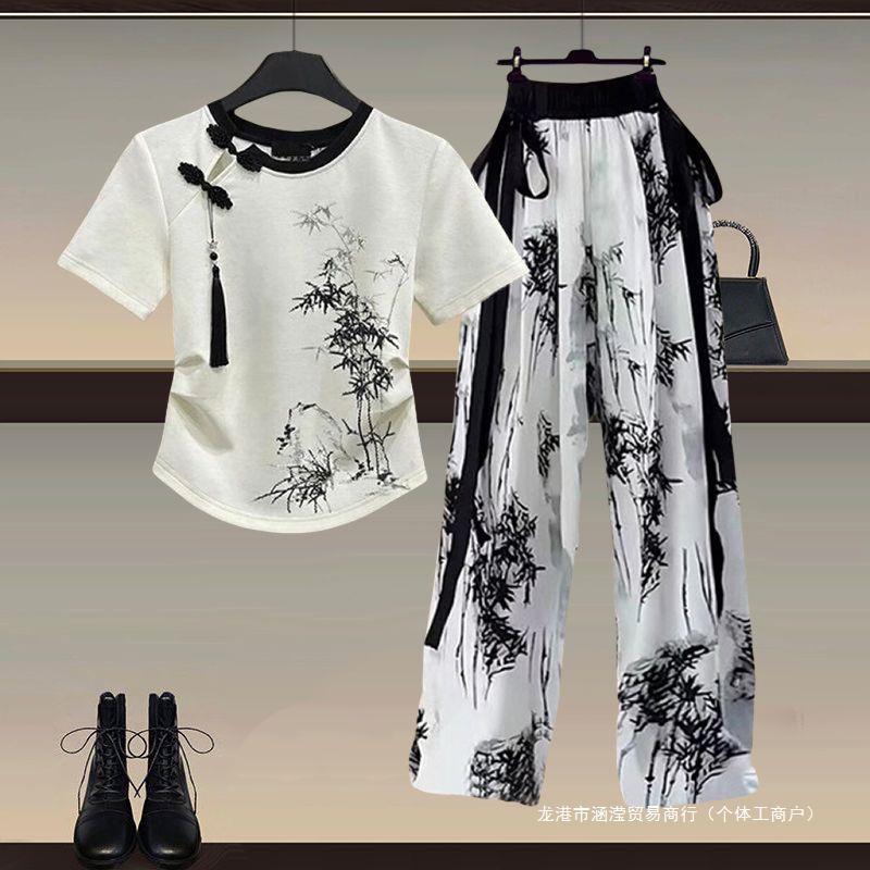 New Chinese Style Women’s Wear a Set of 2024 New National Style Button T-Shirt National Style Slim Casual Pants Two-Piece Set
