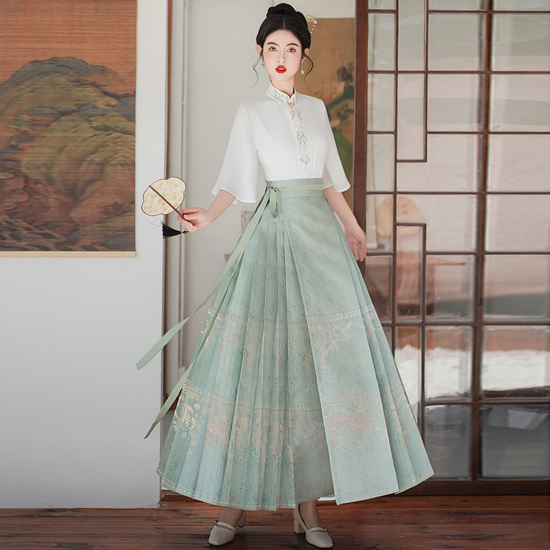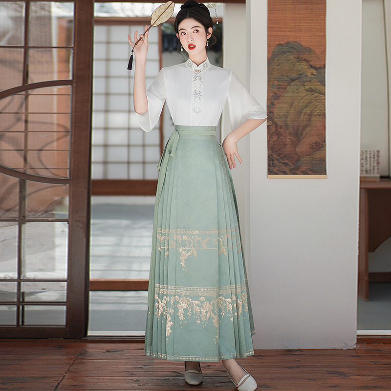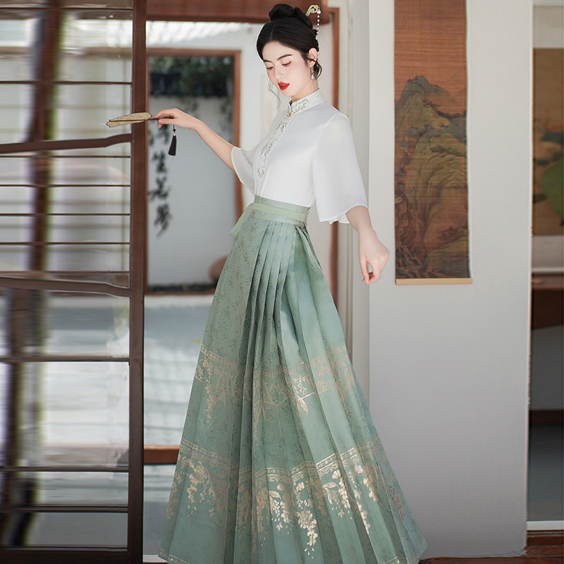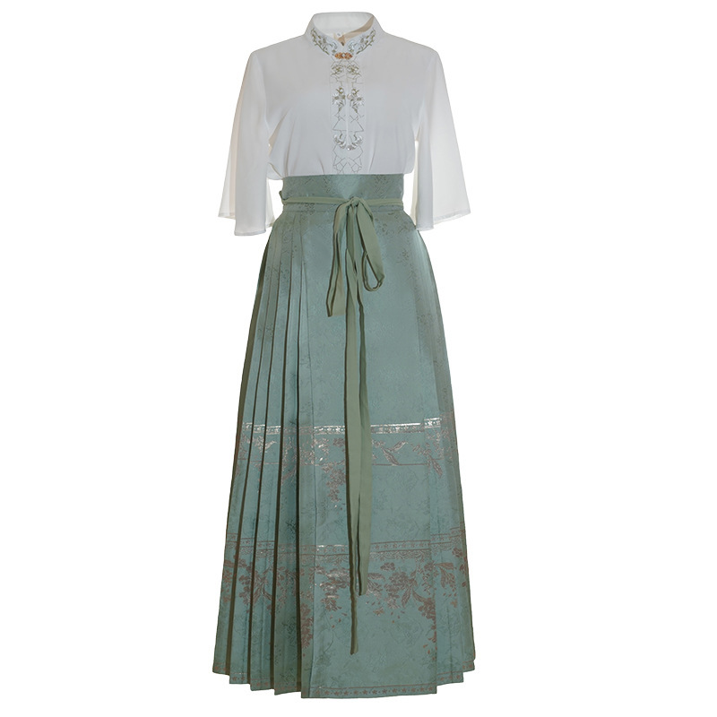 | nameOriginal | New Chinese Style Woven Gold Two-Piece Horse-Noodle Dress Women's Summer 2024 National Style Hanfu Vintage Embroidered Short-Sleeved Top |