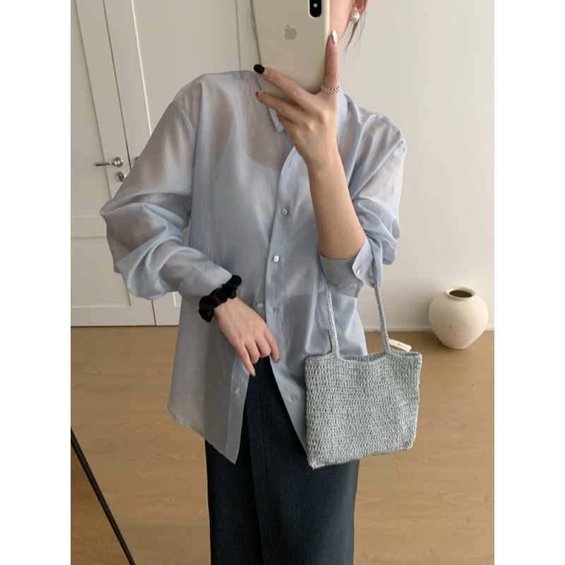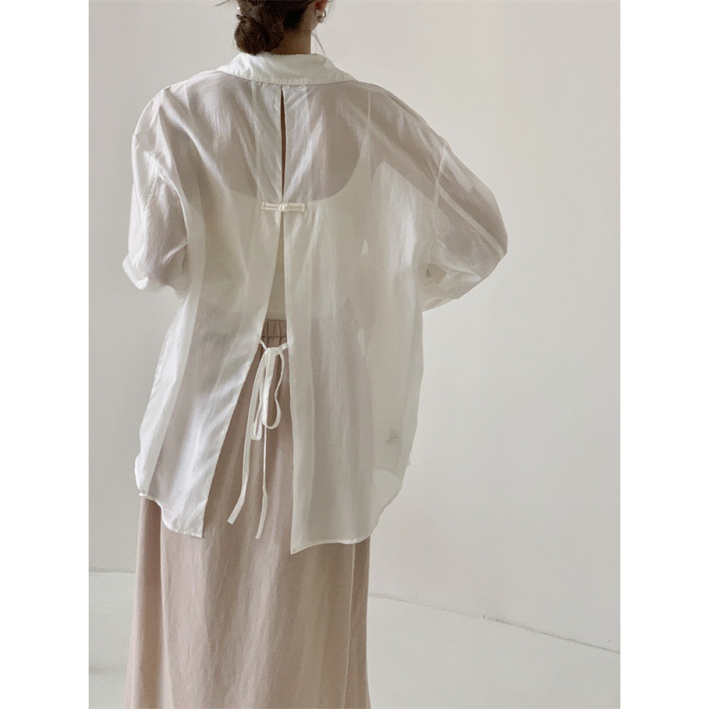 New Chinese Tencel Sunscreen Shirt Women’s 2024 New Summer Thin National Style Back Slit Buckle Holiday Style Top