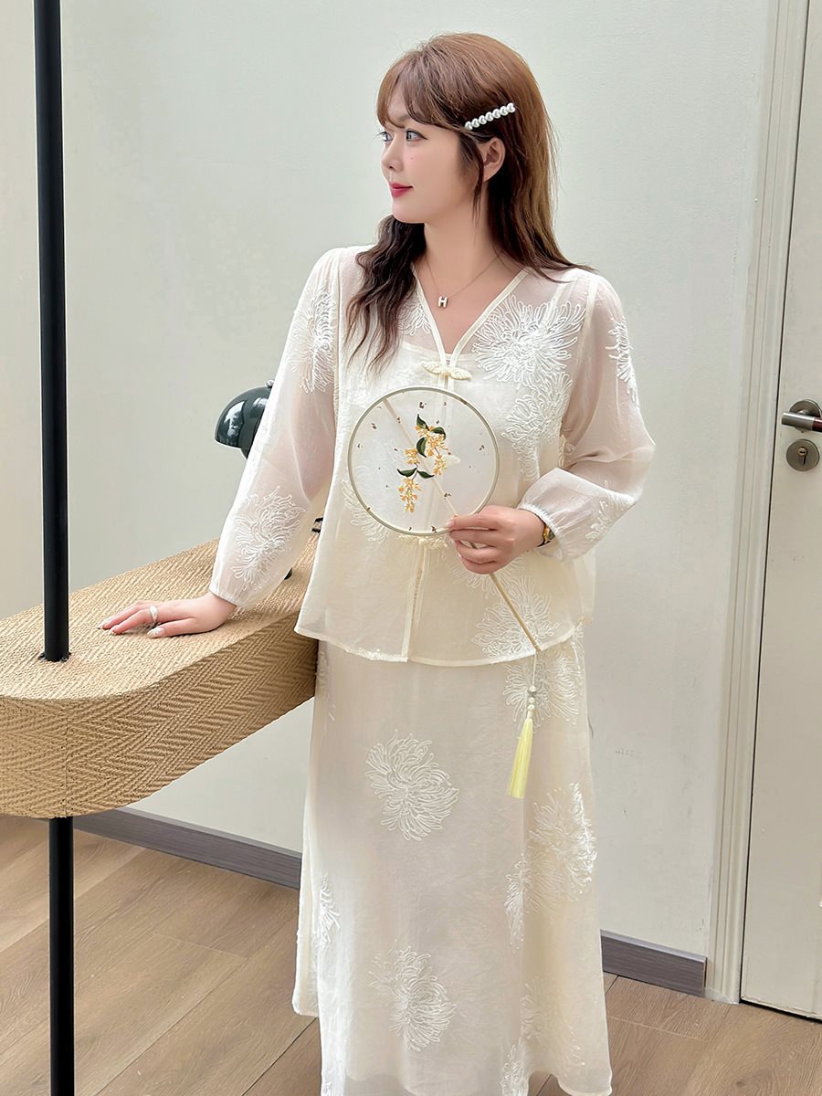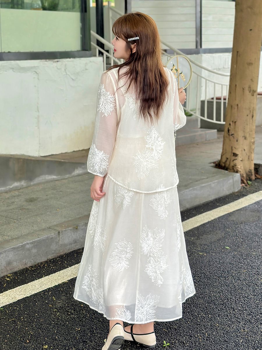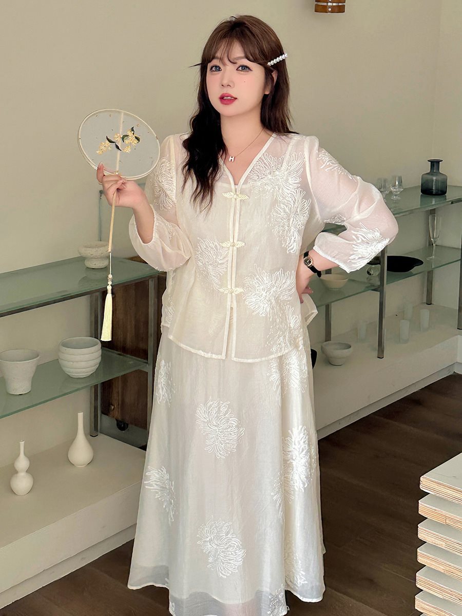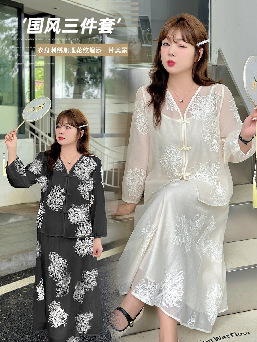 | nameOriginal | New Chinese Zen Style Heavy Industry Embroidered Dress Women's 2024 Summer New chubby girl Buckle Three-piece Set 230274 |