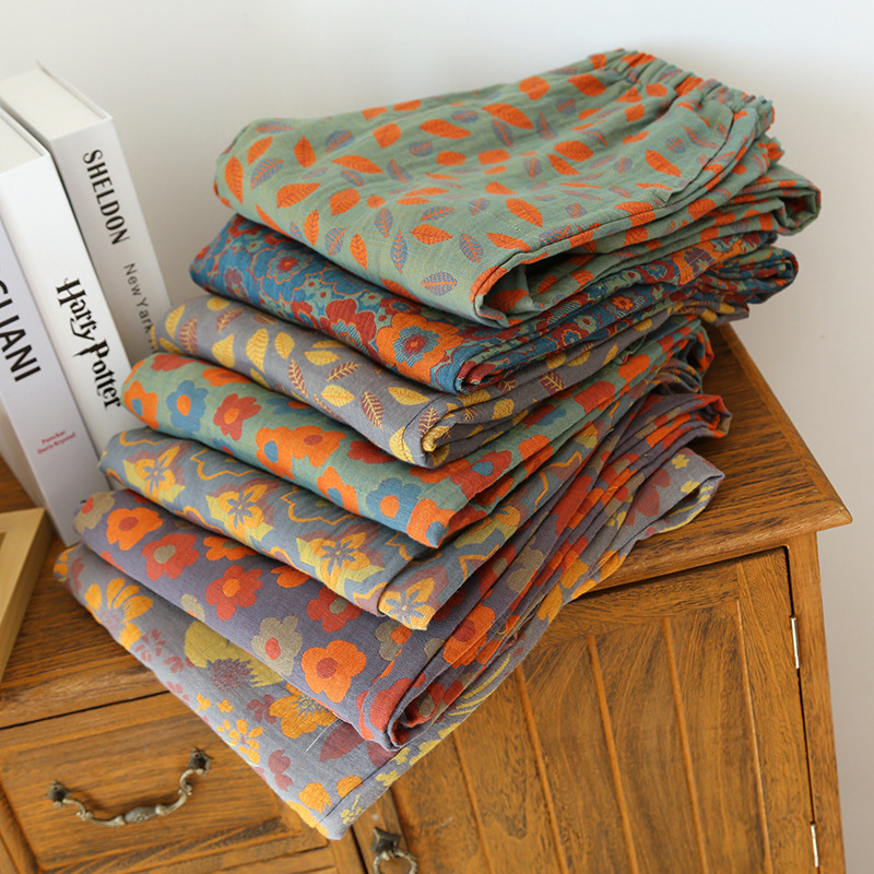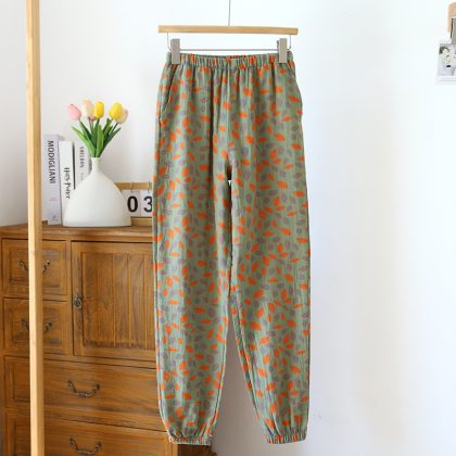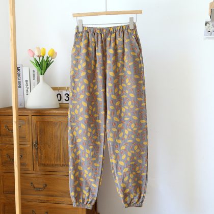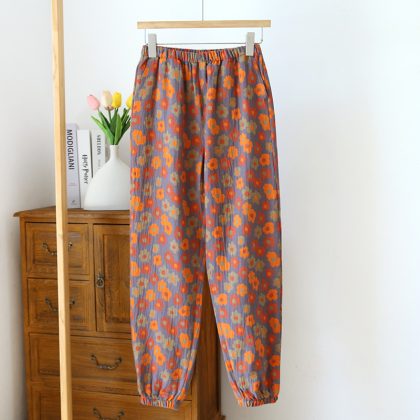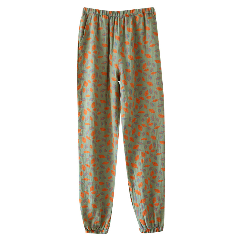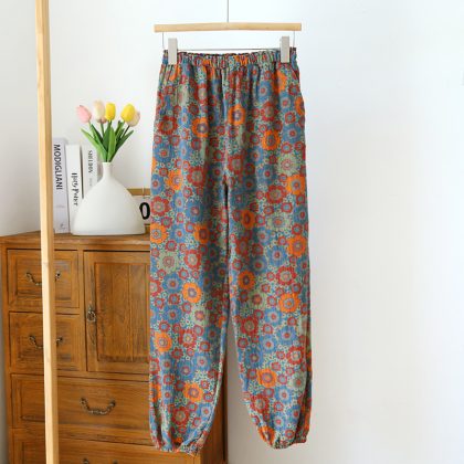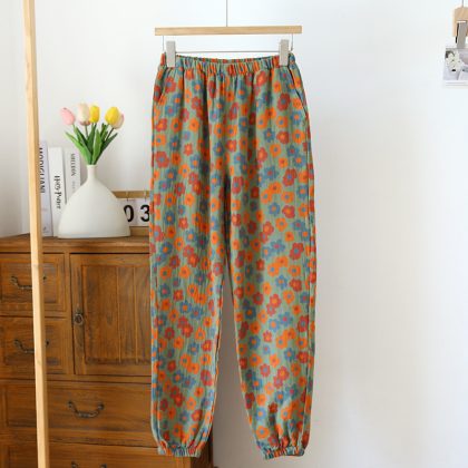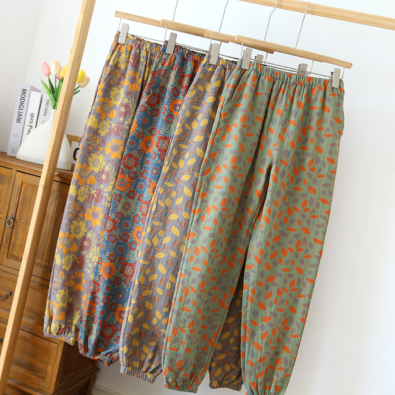 | nameOriginal | New close-up home pants cotton double-sided yarn-dyed pajama pants women's floral ethnic style gauze drawstring pants mosquito-proof pants |
