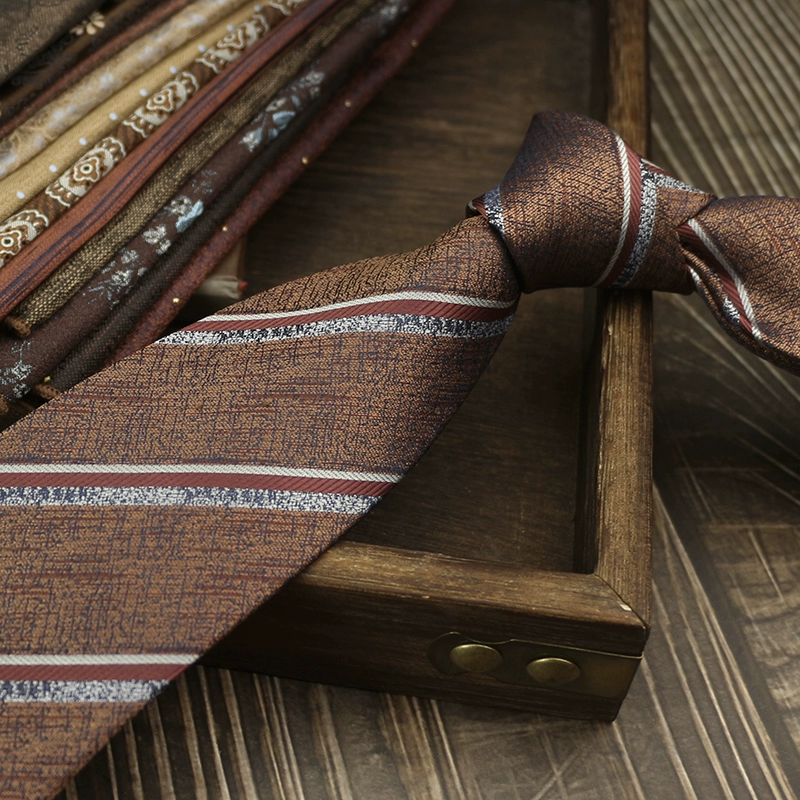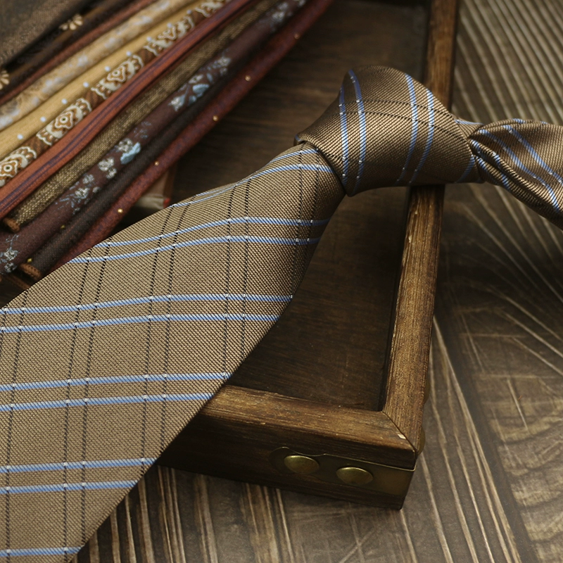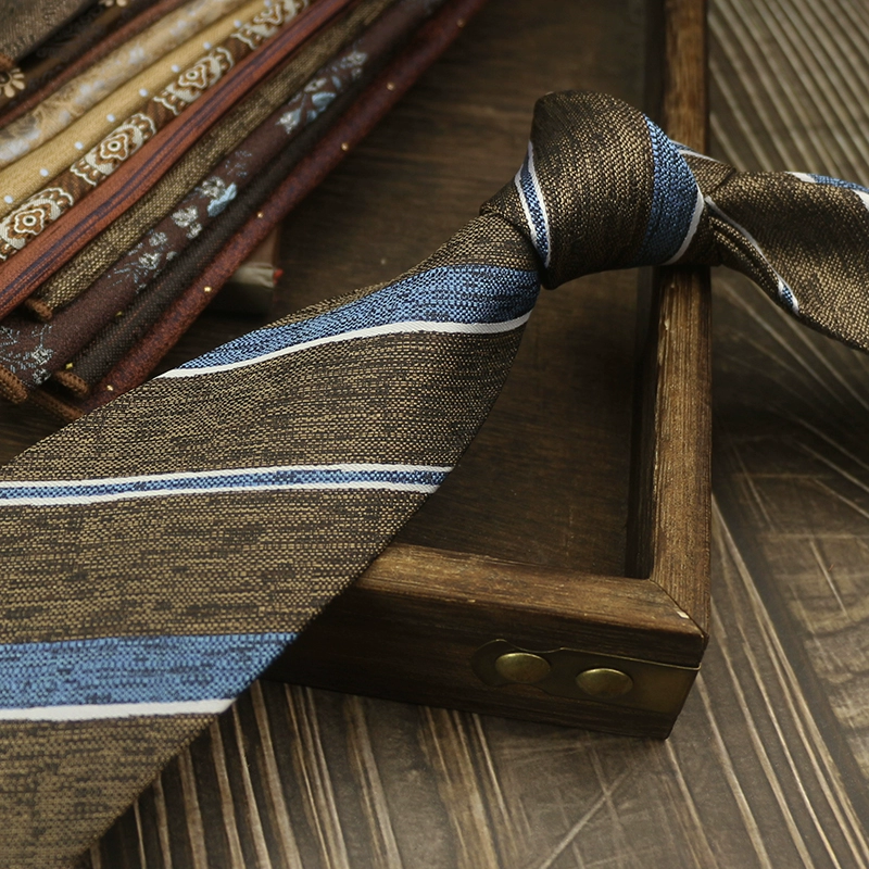 | nameOriginal | New coffee brown red business hand-tied blue striped tie |